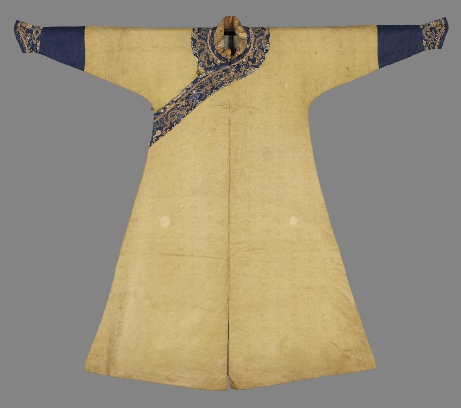 展览中展出的“清黄色团龙纹常服袍”。(沈阳故宫博物院供图)