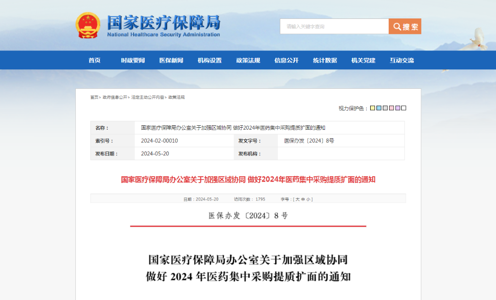 通知明确,将聚焦重点领域,积极推进2024年集采扩面。药品方面,开展新批次国家组织集采,做好胰岛素和前几批集采药品协议期满接续采购。国家医保局重点指导如下全国联采工作:湖北牵头开展新批次全国中成药联盟采购和第一批全国中成药集采协议期满接续采购;山东牵头开展中药饮片联盟采购;河南牵头开展国家组织集采品种的可替代药品联盟采购;三明联盟开展肿瘤和呼吸系统等疾病用药集采。