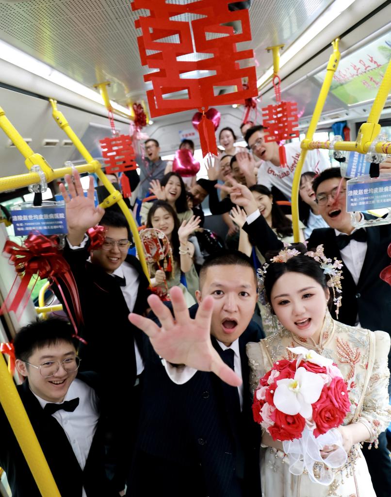 “相比于传统婚车习俗,这样的出行方式低碳环保、性价比也更高,关键是气氛特别棒。”新娘小彭说,婚礼当天自己和10多位朋友在公交车上一起唱歌、拍照,共同分享了新婚之喜。
