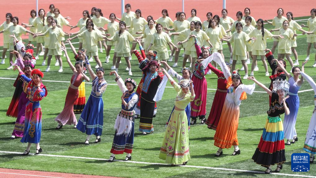 这是5月20日拍摄的第一届全国全民健身大赛开幕式现场进行的文体表演。