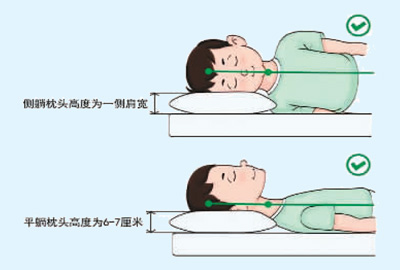 因每个人的身高、体型存在较大的差异,所以枕头的高度没有标准答案。真正影响颈椎健康的,是枕上后的挤压高度。目前,普遍认为,平躺时枕头被压缩后的高度为6—7厘米(大约一拳高)、侧卧时枕头被压缩后的高度为一侧肩宽,是比较理想的枕头的高度。