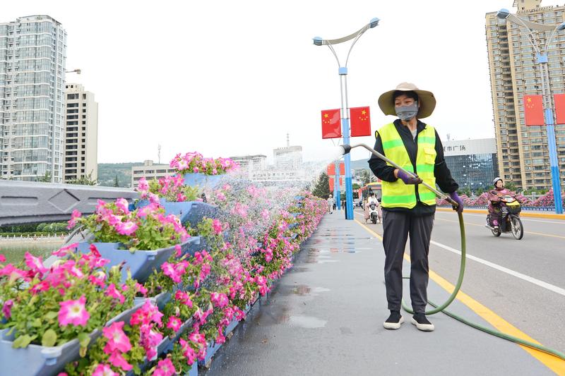 园林工人浇花