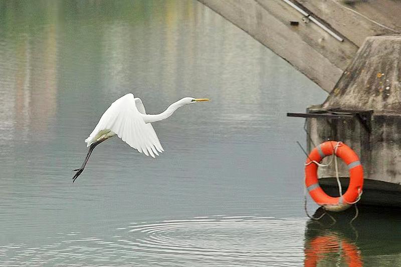 候鸟飞过天水湖。