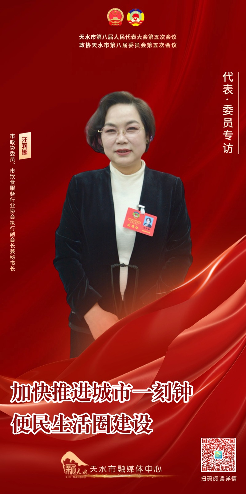 两会海报丨汪莉娜:加快推进城市一刻钟便民生活圈建设