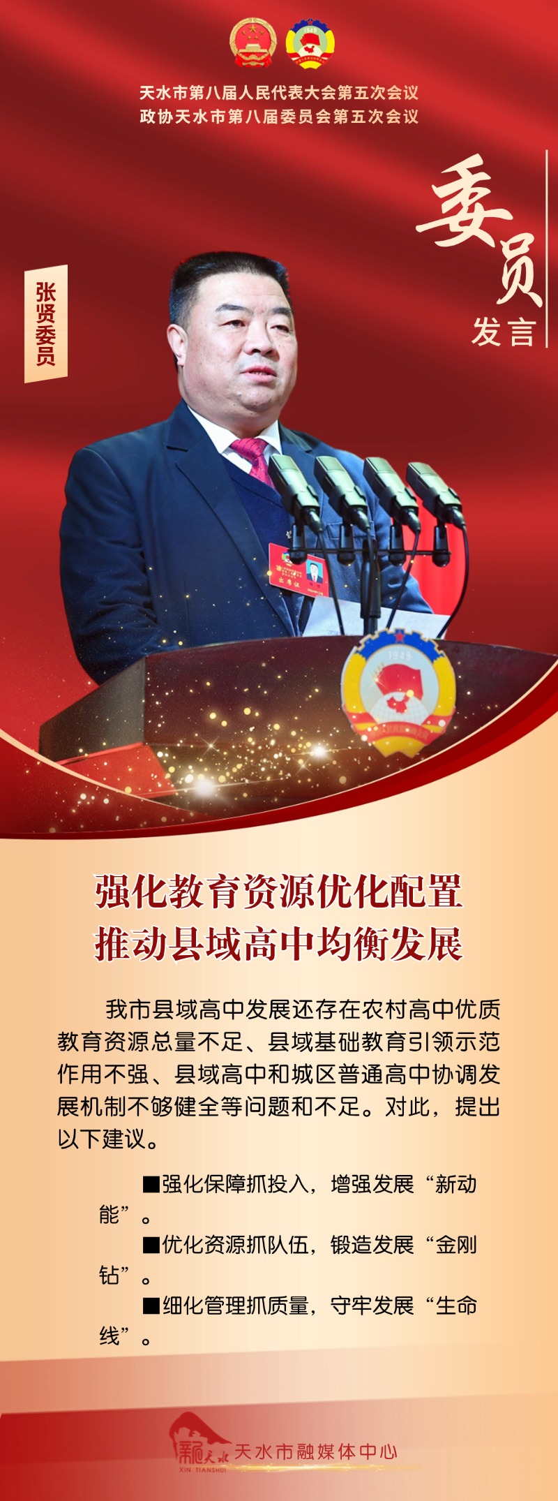 两会海报丨张贤委员:强化教育资源优化配置 推动县域高中均衡发展