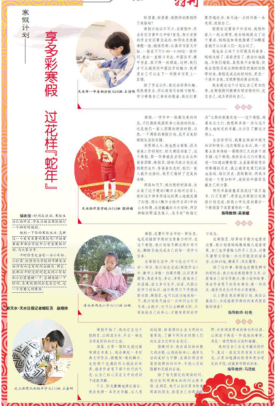 寒假计划 ▏ 享多彩寒假 过花样“蛇年”