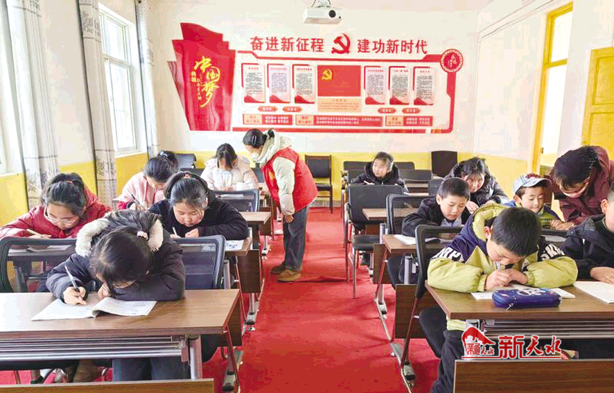 大手拉小手寒假爱心托管班目前已招募返乡大学生26名、高中生10名,组成了由镇村干部、驻村工作队员、返乡大学生组成志愿者“爱心辅导员”,为160余名中小学生提供作业辅导和照护服务。在本期爱心托管班中,根据中小学生就读学校和年级课程要求分类施教,并围绕作业辅导、手工制作和春节文化习俗知识教育等多种课堂内容,做到让家长放心,让孩子开心。