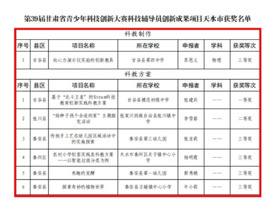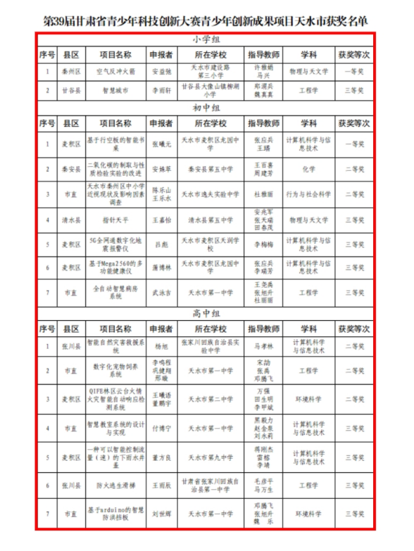 天水市在2025年甘肃省科创大赛成果展示类暨第39届全省青少年科技创新大赛中荣获佳绩