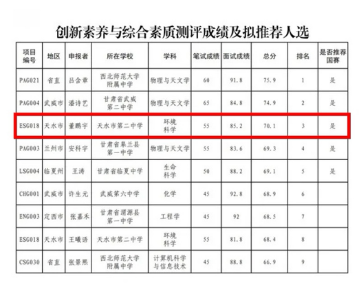 近日,由甘肃省教育厅、甘肃省科学技术协会共同举办的2025年甘肃省科创大赛成果展示类暨“庄园牧场杯”第39届甘肃省青少年科技创新大赛结果公布,我市参赛选手喜获佳绩,共获得一、二、三等奖23项,其中天水市第二中学董鹏宇同学凭借过硬科学素质和综合科技潜能,在创新能力和综合素质测评中脱颖而出,以全省第三名的成绩入围国赛。