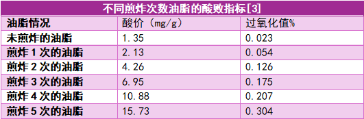 首先,经过了高温煎炸后的食用油,营养价值会降低,破坏了必需脂肪酸和脂溶性维生素。一项发表在《食品科技》上的研究,利用高效液相色谱(HPLC)测定回锅油中的脂肪酸成分,结果发现:花生油中亚麻酸、亚油酸和油酸等不饱和脂肪酸含量通常在 85% 以上,但在经过了 2 小时的煎炸后只剩下 17% 了。植物油中的维生素 E 经过高温油炸会有 70%~90%会被破坏,反复使用的“回锅油”破坏程度更为严重。