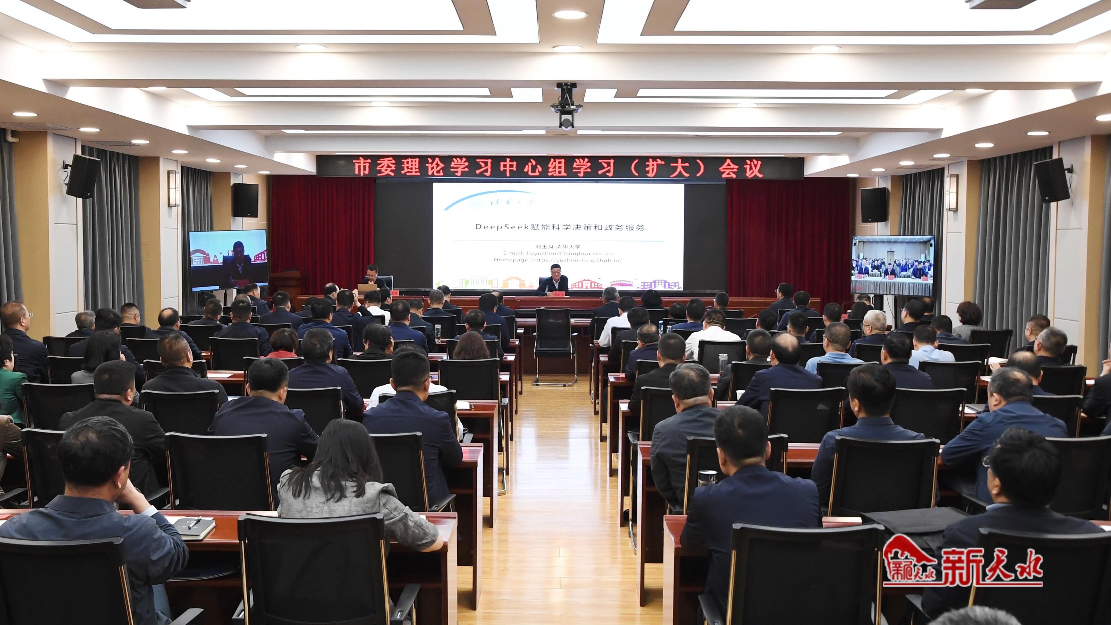 新天水讯【记者 马放】5月9日,市委书记冯文戈主持召开市委理论学习中心组学习(扩大)会议,专题学习DeepSeek赋能科学决策和政务服务,引导全市上下结合工作实际,推进人工智能科技创新、产业发展和赋能应用,提升工作水平,助推全市高质量发展。清华大学软件学院副教授、博士生导师刘玉身围绕“DeepSeek赋能科学决策和政务服务”作专题辅导。