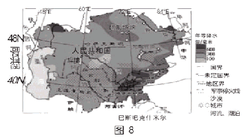 (3)从水资源利用角度说明中亚引进我国滴灌技术的积极作用。(2分)