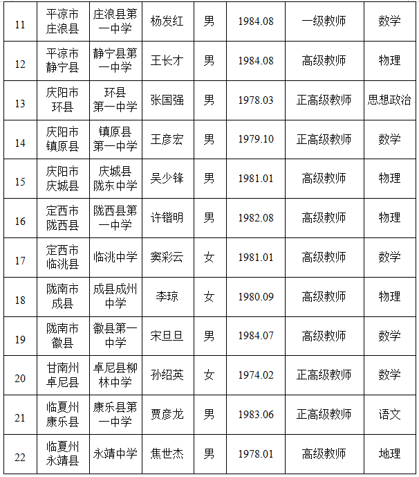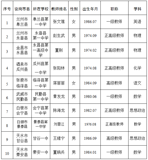 “县域普通高中头雁教师岗位计划”拟推荐人选名单