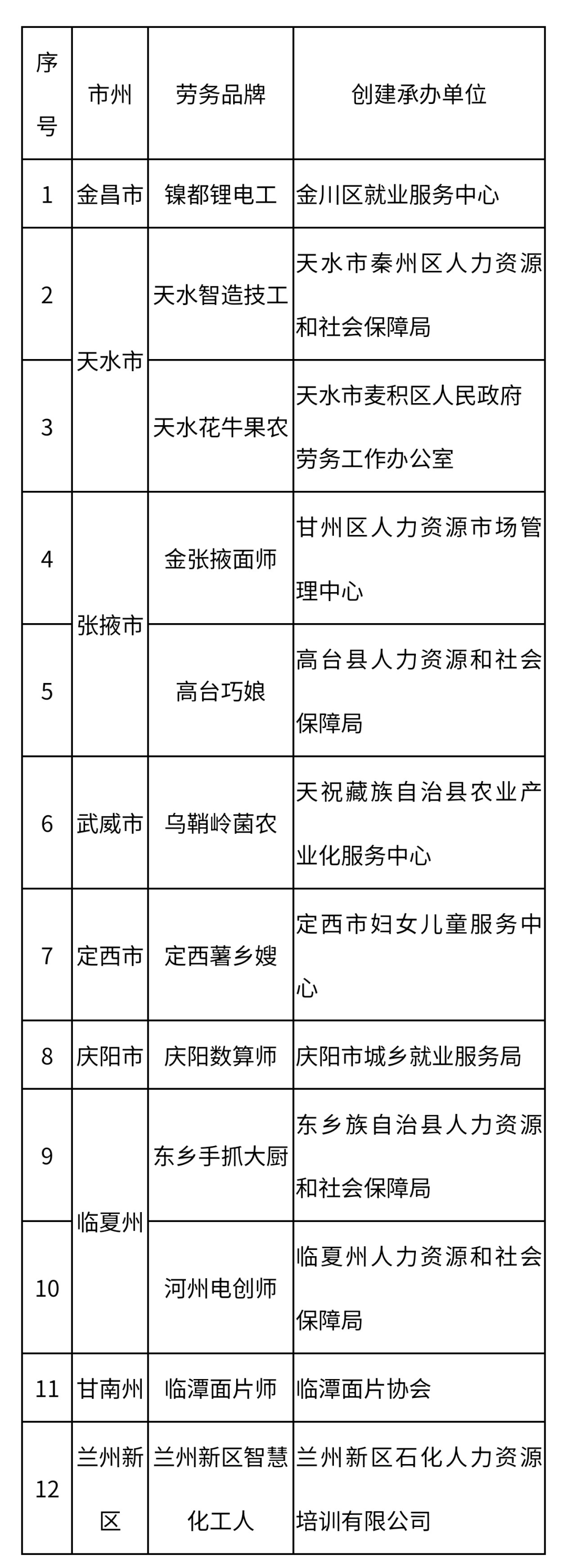 2025年甘肃省农民工返乡创业平台和省级劳务品牌拟认定名单公示
