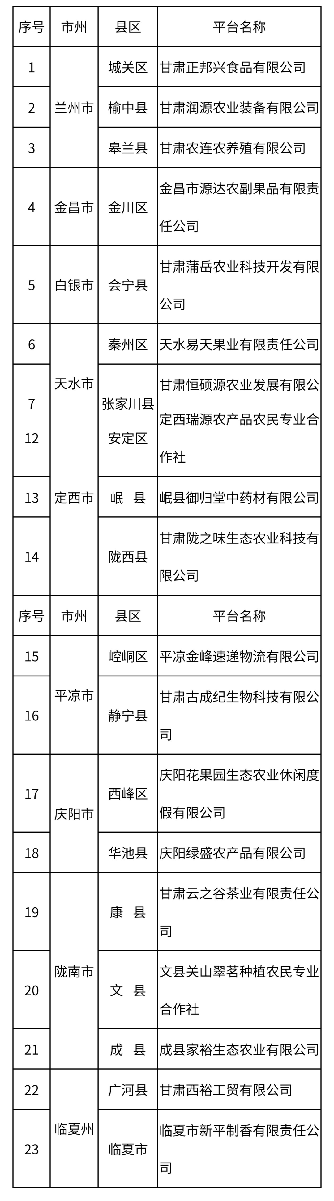 2025年甘肃省农民工返乡创业平台拟认定名单(23个)