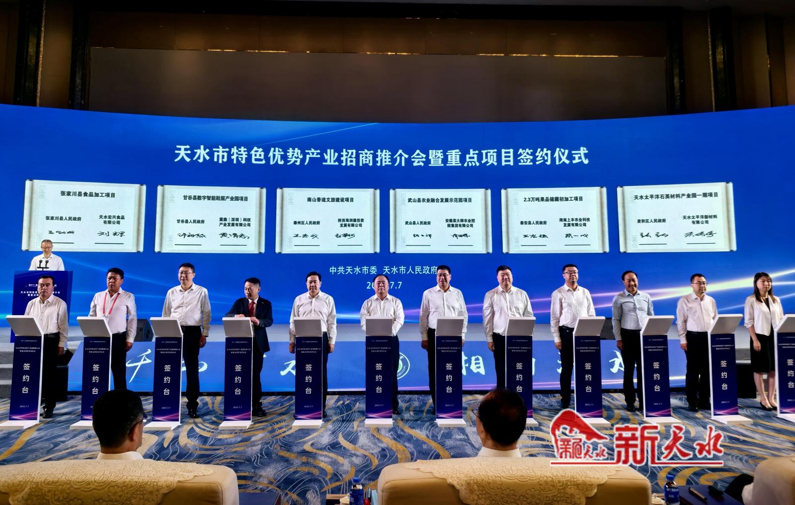新天水讯 7月7日上午,第三十一届兰洽会天水市特色优势产业招商推介会暨重点项目签约仪式在兰州举行。天水市共签约项目98个、总投资605.31亿元,其中各县区共签约项目92个,总投资442.75亿元,涉及装备制造、新能源、新材料、数字经济、节能环保、特色农产品及食品加工等领域。