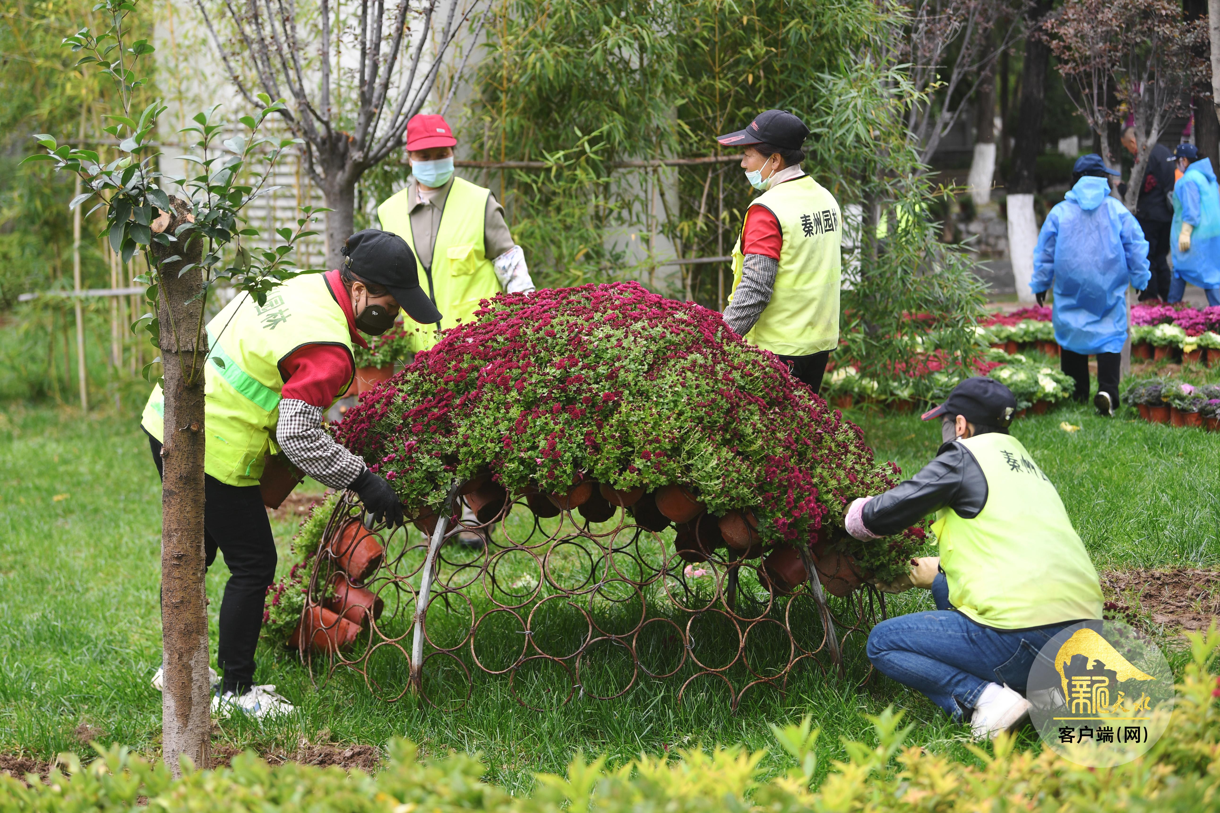 10月16日,工作人员在人民公园有条不紊地布展。此次菊展的主题为“金秋菊韵·诗意秦州”,精心打造了十一个主题展区,共展出各类菊花4万余盆,另外还有精品插花1.8万枝,将自然之美与艺术巧思深度融合,展品规模堪称历年之最。