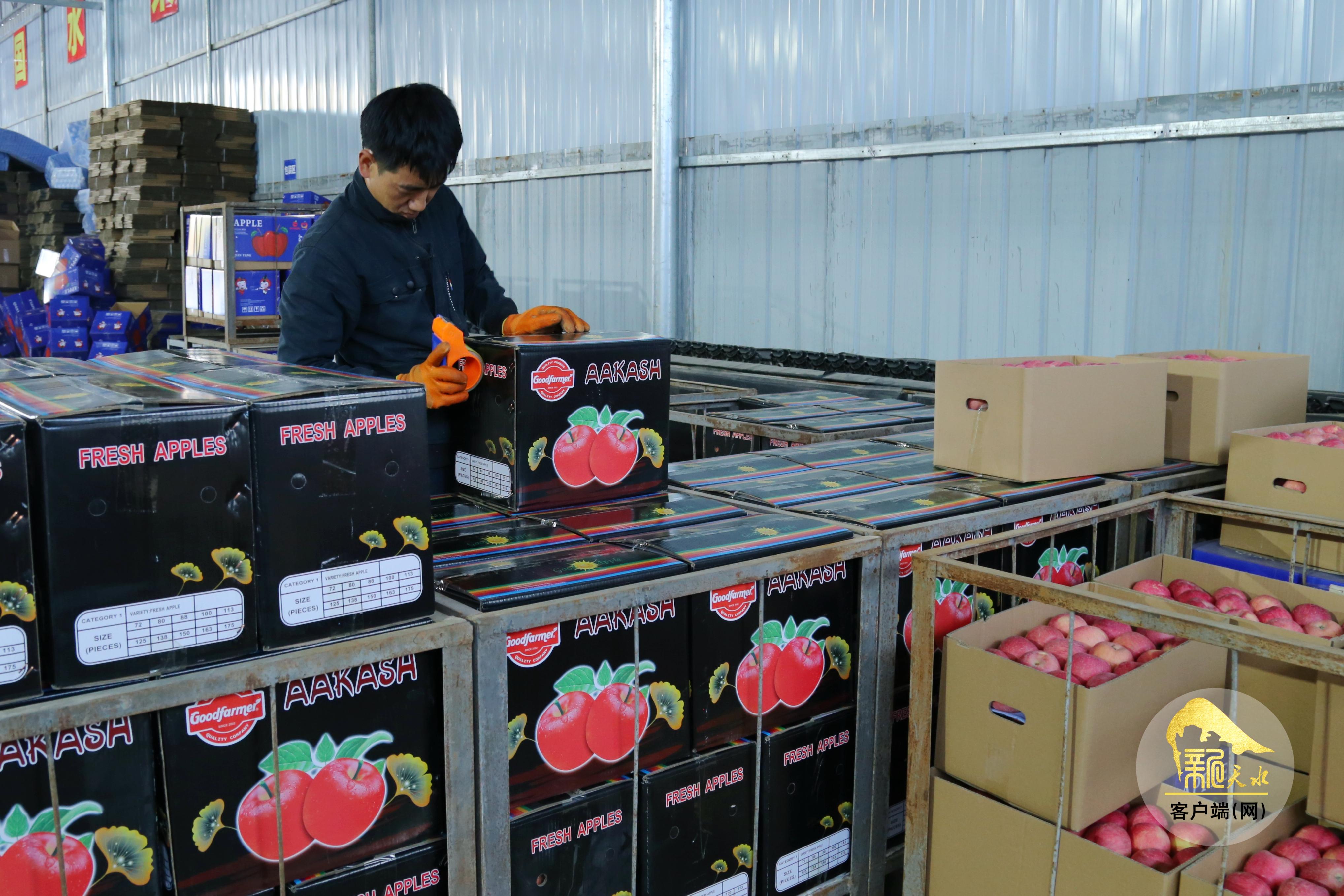 在天水峻泽国际贸易有限公司的保鲜库内,工人们正忙着分拣、打包秦安苹果。黑色箱子发往尼泊尔,蓝色箱子运往越南,红色箱子将通过全冷链海运发往新加坡,不同颜色的包装承载着秦安农特产品“走出去”的梦想。