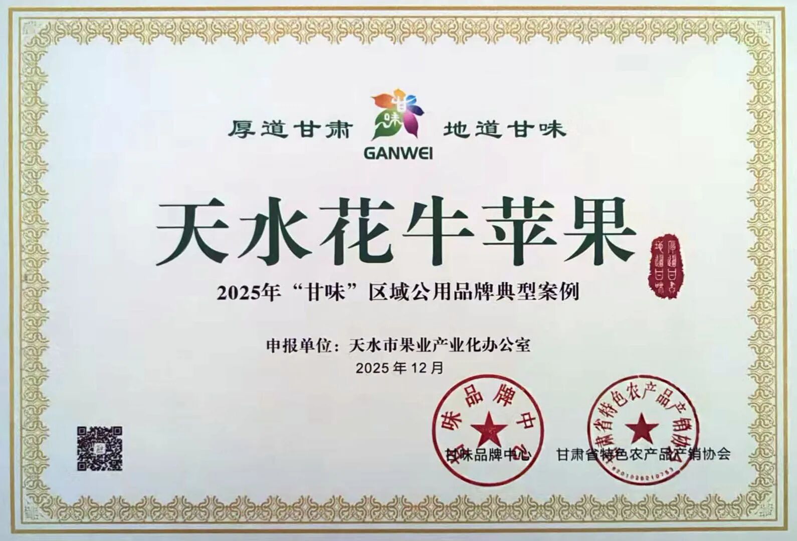 天水花牛苹果入选2025年“甘味”典型案例
