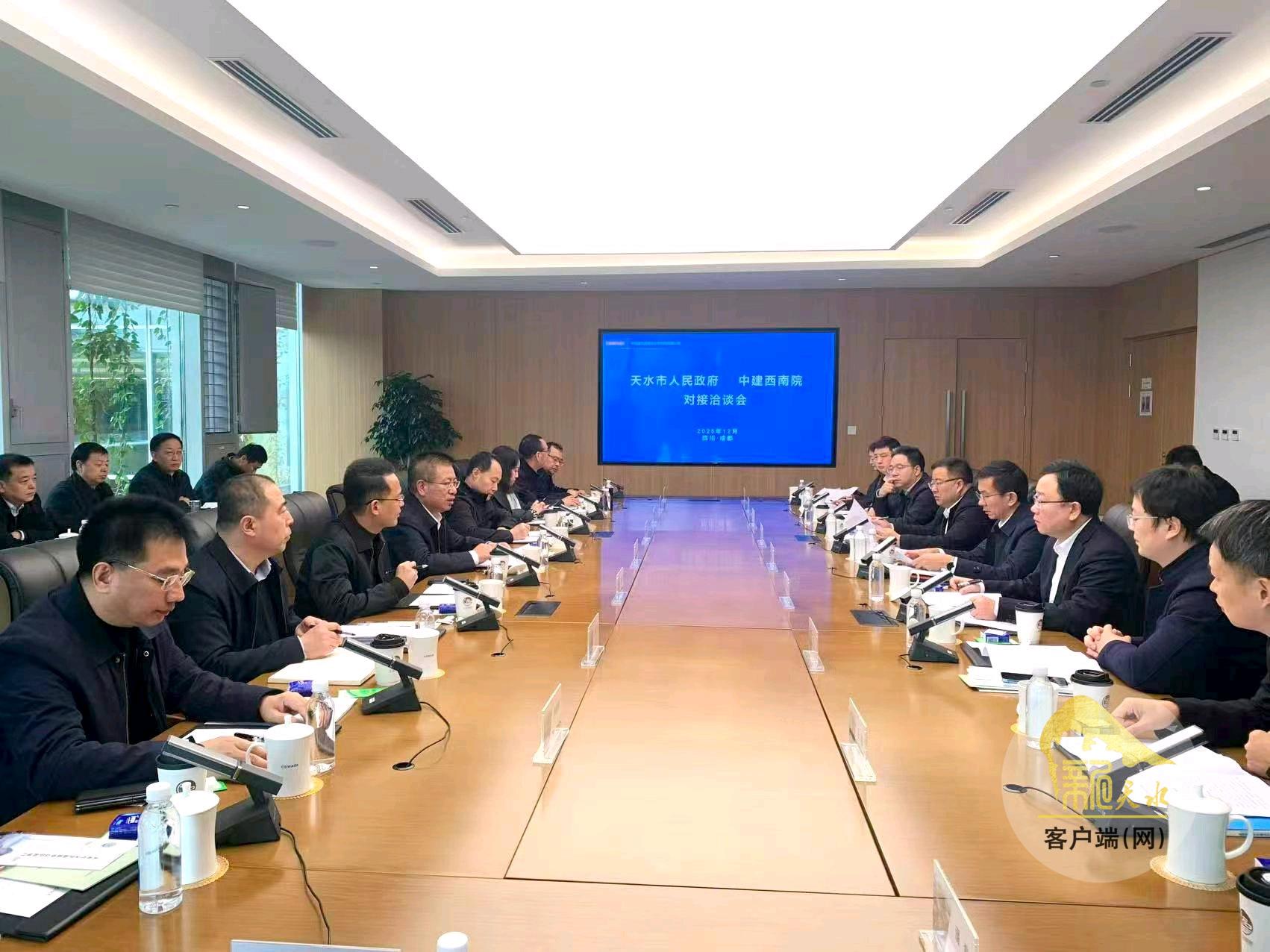 座谈会上,刘力江对中建西南院在大型公共建筑、绿色低碳等领域的发展成就给予高度评价。他说,天水市作为丝绸之路经济带和关中平原城市群重要节点城市,历史底蕴深厚,文旅资源富集,发展潜力巨大。中建西南院作为中国建筑设计领域的领军企业,发展理念先进,技术实力雄厚,管理经验丰富,双方深化合作前景广阔。希望中建西南院深度参与天水城市更新、文旅开发、城市设计等工作,不断拓宽合作空间,创新合作模式,深化务实合作,携手推进天水区域中心城市建设。