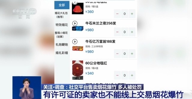 声音来源 法律问题专家 岳屾山:国家对于烟花爆竹其实是实行非常严格的许可证制度,它的核心原则就是线下是要定点进行经营。即使是已经取得了烟花爆竹经营的,不管是批发还是零售许可证,合法的销售活动也是必须严格限定在许可证上面所载明的固定的零售的经营场所内来进行。通过这种社交平台兜售,并且承诺邮寄或者是送货上门,其实它是属于一种违法的行为。