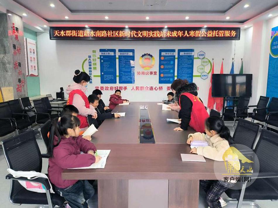 新天水讯 1月12日,秦州区天水郡街道藉水南路社区精心筹备的寒假公益托管班正式开班,以切实破解辖区留守儿童及双职工家庭子女假期“看护难”问题,致力于为孩子们打造安全、充实、快乐的假期成长空间。