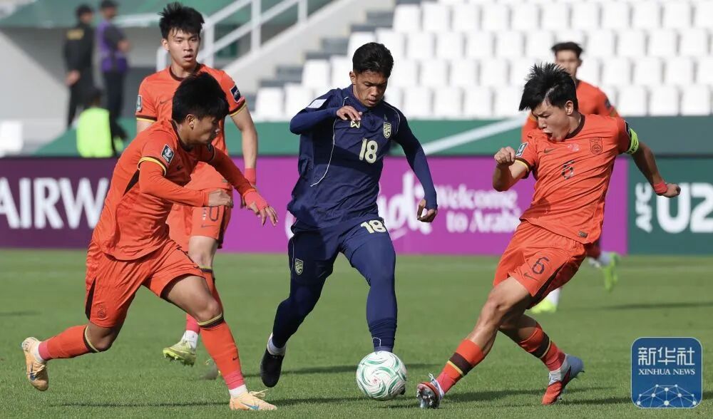14日在沙特阿拉伯利雅得进行的2026年亚足联U23男足亚洲杯D组最后一轮比赛中,中国队0:0战平泰国队,首次晋级淘汰赛。