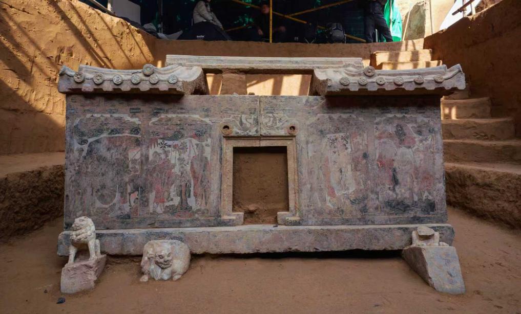 这是西安百花村北周成夫人墓中发现的石椁。(西安市文物保护考古研究院供图)