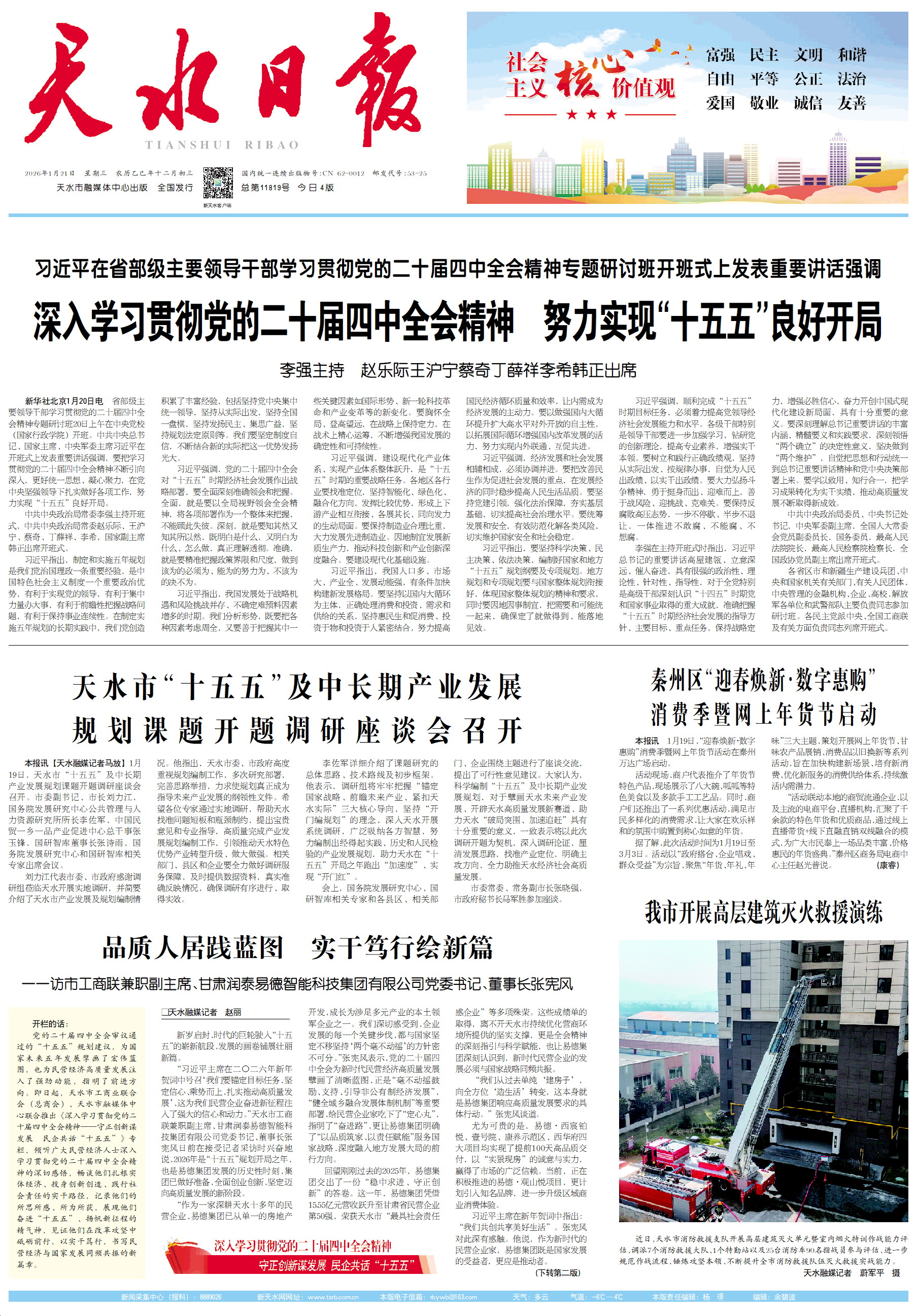 开栏的话:党的二十届四中全会审议通过的“十五五”规划建议,为国家未来五年发展擘画了宏伟蓝图,也为民营经济高质量发展注入了强劲动能,指明了前进方向。即日起,天水市工商业联合会(总商会)、天水市融媒体中心联合推出《深入学习贯彻党的二十届四中全会精神——守正创新谋发展 民企共话“十五五”》专栏,倾听广大民营经济人士深入学习贯彻党的二十届四中全会精神的深切感悟,畅谈他们扎根实体经济、投身创新创造、践行社会责任的实干路径,记录他们的所思所感、所为所获,展现他们奋进“十五五”、扬帆新征程的精气神,见证他们在改革攻坚中砥砺前行,以实干笃行,书写民营经济与国家发展同频共振的新篇章。