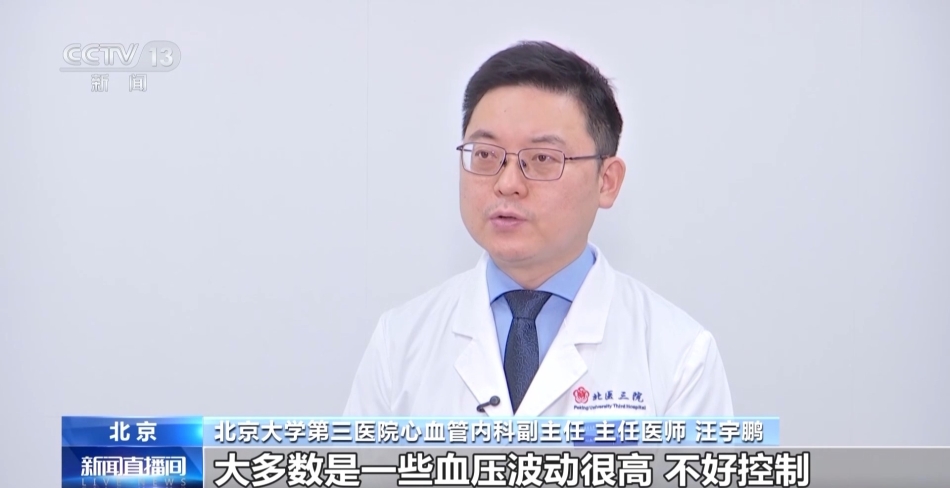 北京大学第三医院心血管内科副主任 主任医师 汪宇鹏:心血管科门诊现在一多半的患者可能都是血压升高的,高血压的患者合并一些头晕、头痛的症状。尤其是长时间待在干燥的室内,如果摄水量不够,可能会导致血液的黏稠淤滞。再加上如果吃了高热量食物,也会导致血液变得更加黏稠,这些都会让我们在这个季节,更容易发生心脑血管的疾病。