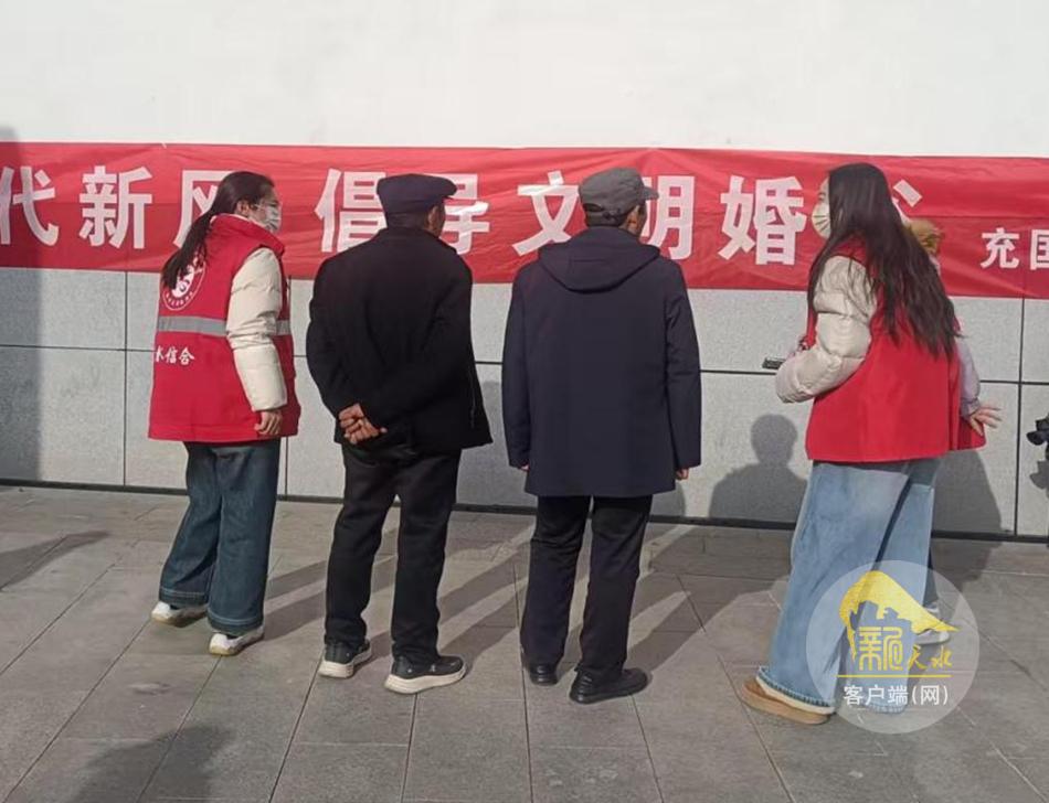 该社区依托新时代文明实践站,构建“线上+线下”立体宣传网络。线上通过社区微信群、公众号、客户端等平台,发布破除高额彩礼倡议书、海报;线下在小区公示栏张贴资料、悬挂横幅,通过剖析高额彩礼的危害、分享“低彩礼、高幸福”的身边案例、讲解如集体婚礼、旅行结婚等文明婚嫁形式,引导广大居民特别是青年群体,树立“感情为重、婚姻自主”“重感情、轻彩礼”的正确婚恋观,让文明婚恋理念走进千家万户。