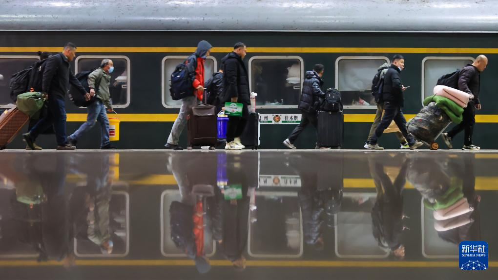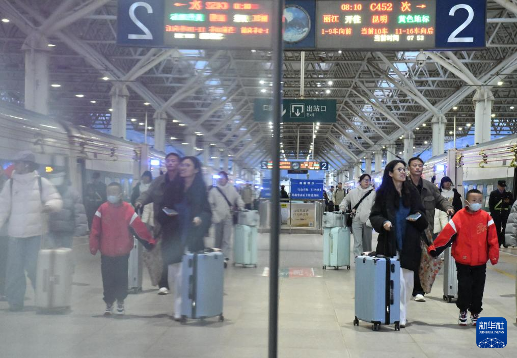 2月2日,旅客在哈尔滨火车站乘车出行。