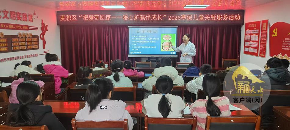 新天水讯 近日,麦积区道北街道联合区妇联、区图书馆,在育才社区举办“把爱带回家——暖心护航伴成长”2026年寒假儿童关爱服务活动,以“托管+关爱”模式护航儿童成长。