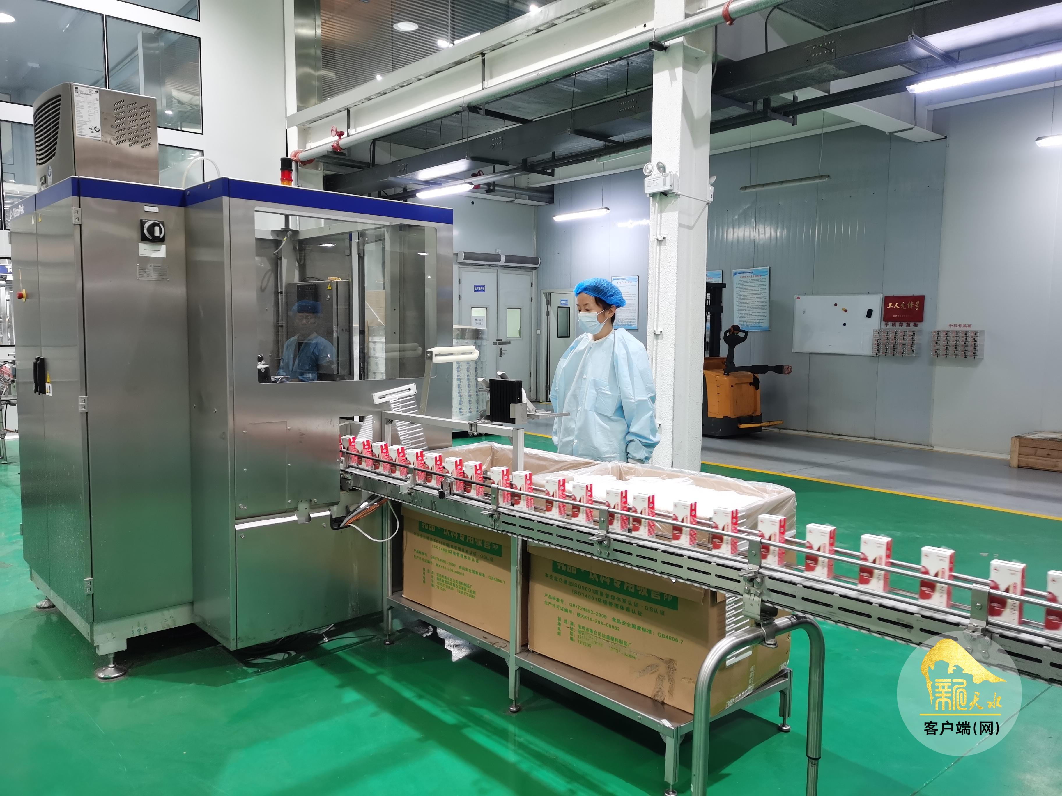 连日来,在天水长城果汁集团股份有限公司的生产车间,工人们正在加紧生产“陇上花牛”100%苹果汁。