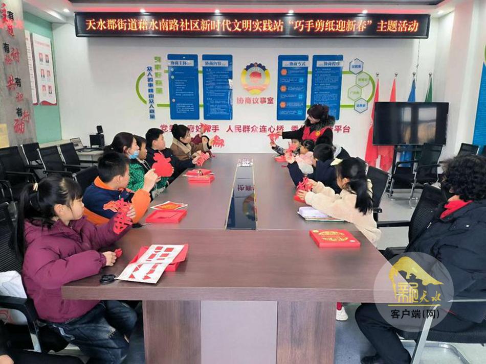 新天水讯 2月9日,秦州区天水郡街道藉水南路社区新时代文明实践站开展“巧手剪纸迎新春”主题活动,以传承优秀传统文化,营造喜庆新春氛围,丰富居民文化生活。