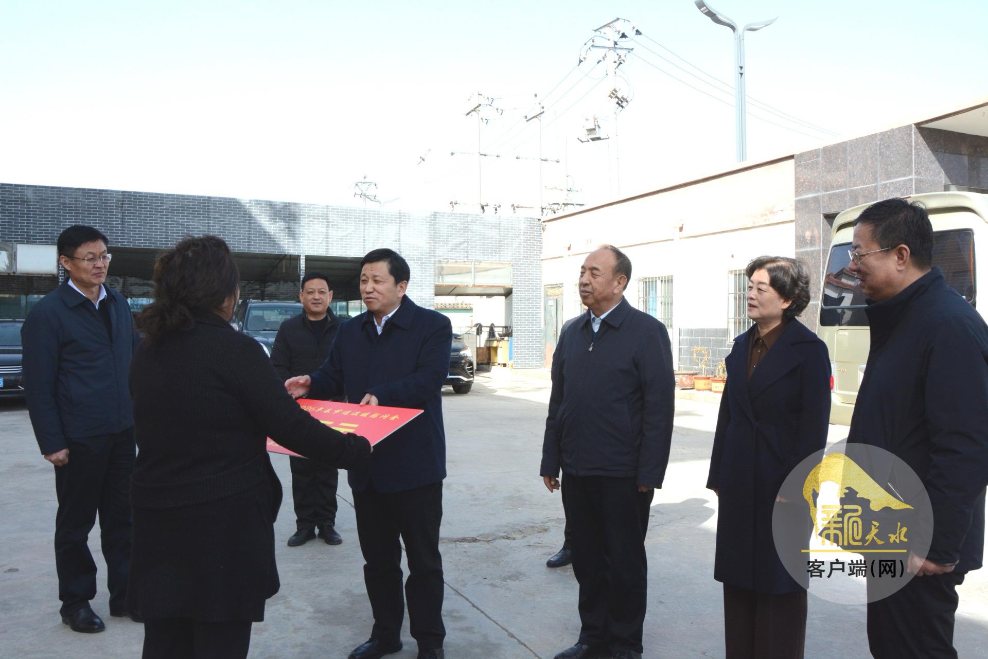 新天水讯【天水融媒记者 李欣桐】新春佳节来临之际,2月10日,市领导杨晓锋、黎映广、汪小娟、王东红、杨铁森一行赴甘谷县开展“送温暖”慰问活动,走访困难企业、困难群众、优抚对象、高层次专家人才、先进模范等,与他们亲切交谈,聊发展、拉家常、问冷暖,送去市委市政府的关怀和温暖,并致以节日祝福。