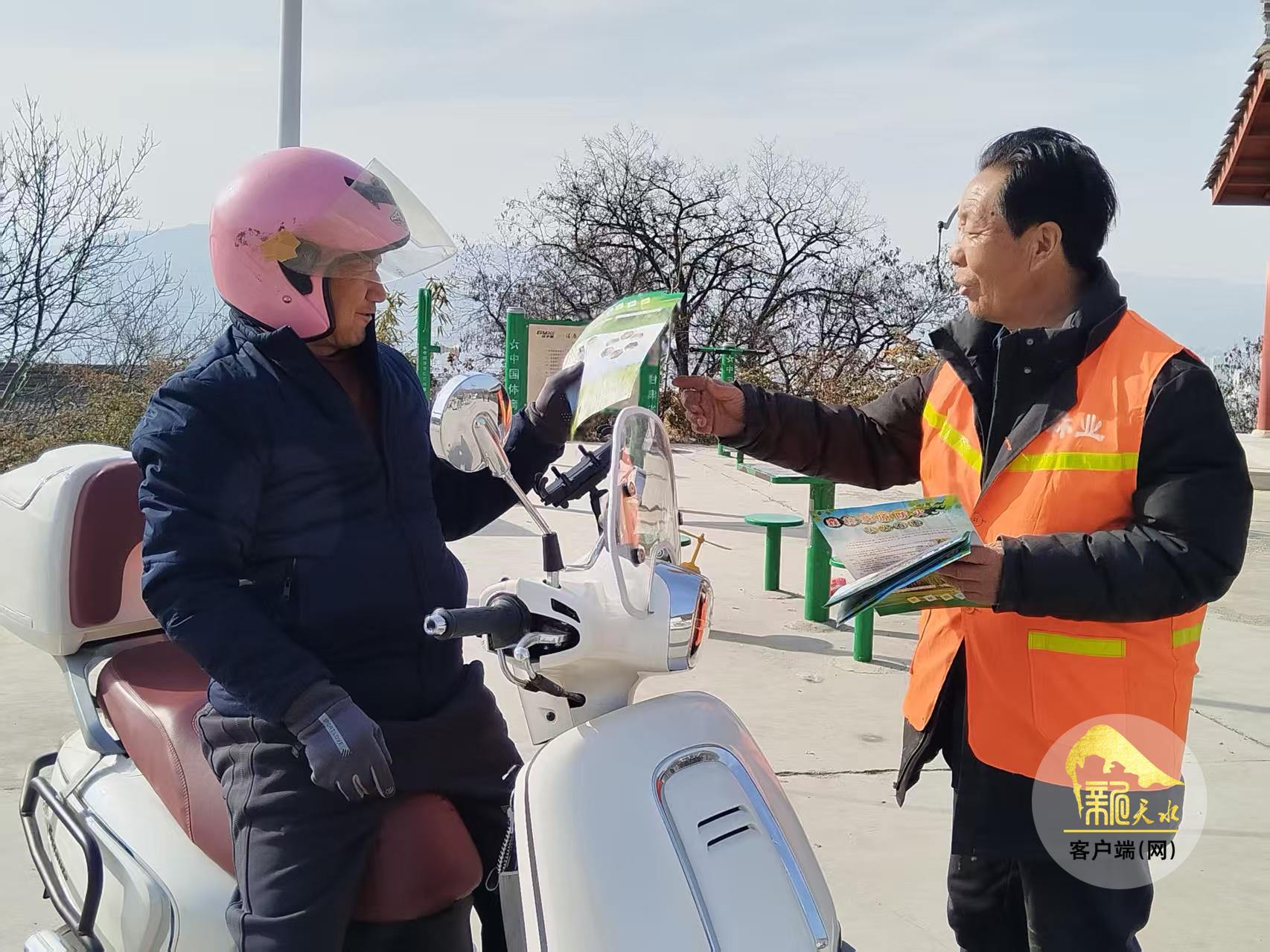 “马上过年了,一定要注意防火安全,发现意外情况,可以拨打宣传单上的号码12119。”“孩子们,你们一定不要在林区随意玩火,遇到其他孩子玩火,也要上前劝阻。”2月13日,秦州区林业和草原局护林员来到林区内各村庄,向群众发放了森林草原防火宣传彩页。春节将至,北山护林员在加密巡查频次,确保第一时间发现和制止违规用火行为的同时,也加大了防火宣传力度。