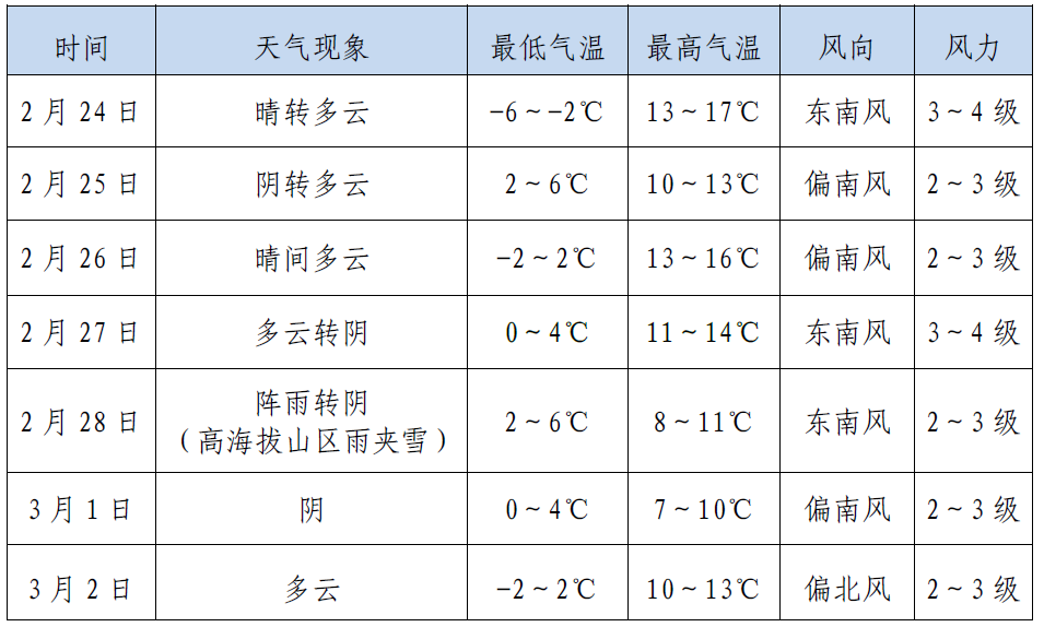 天水市气象台发布2月24日—3月2日天气预报