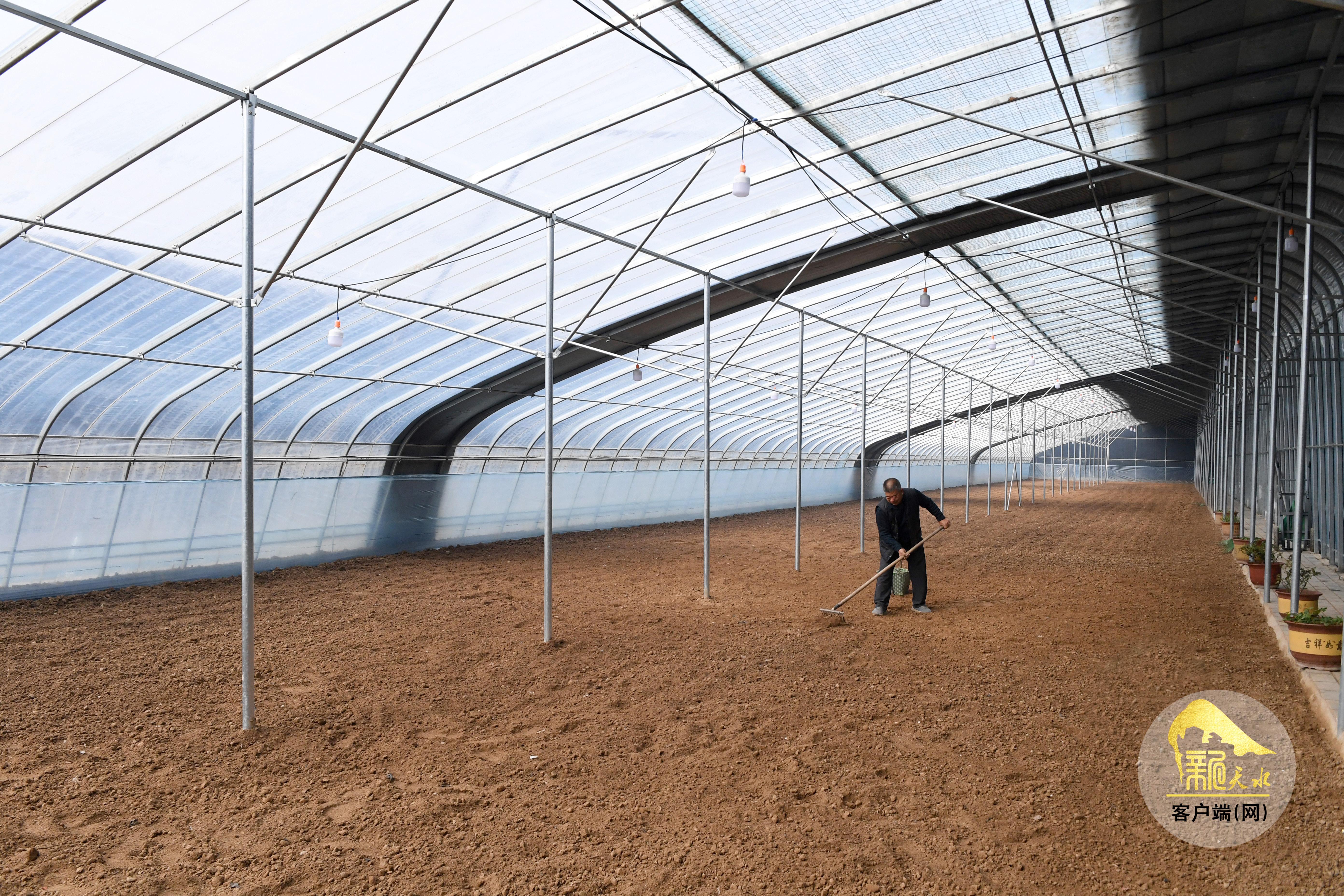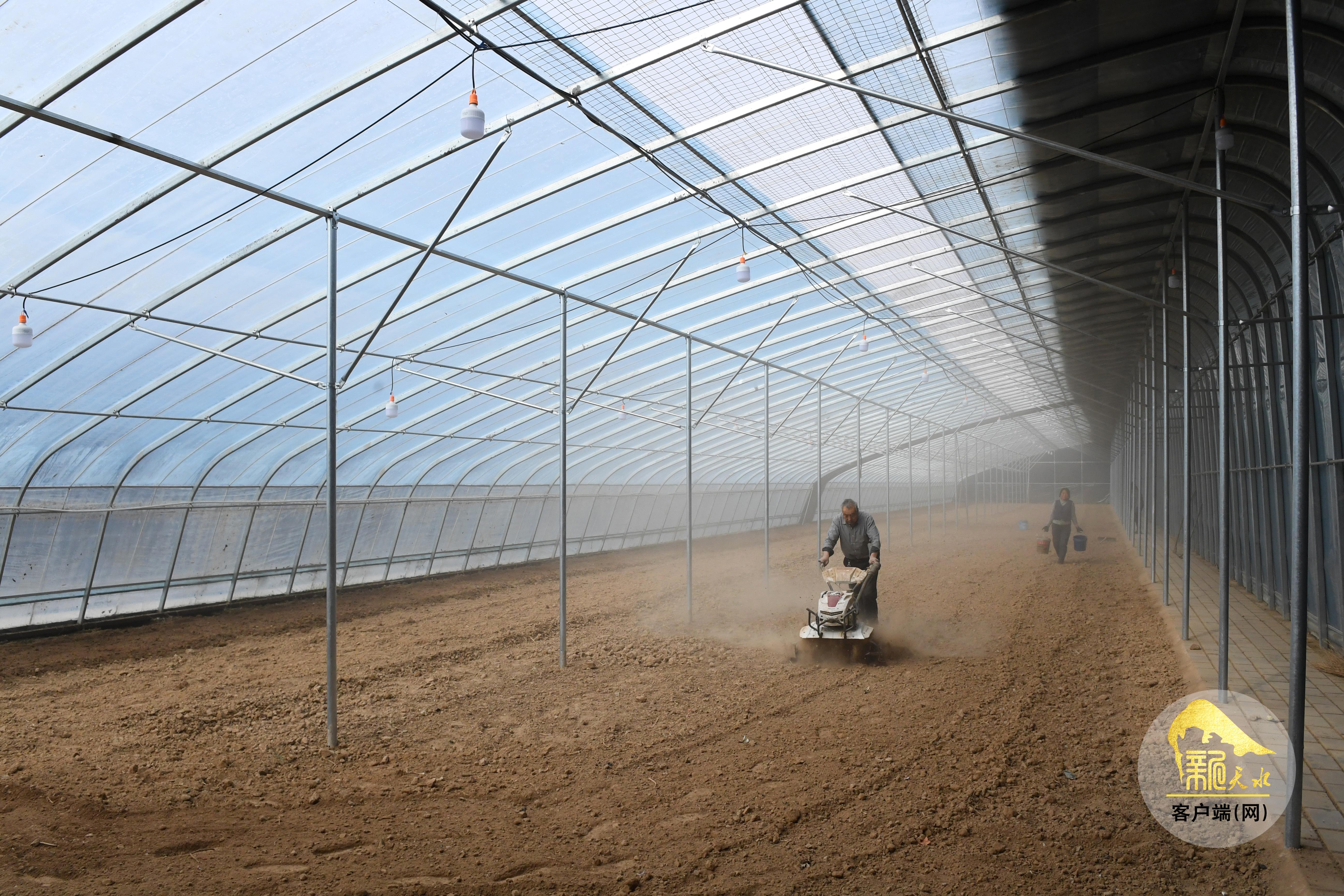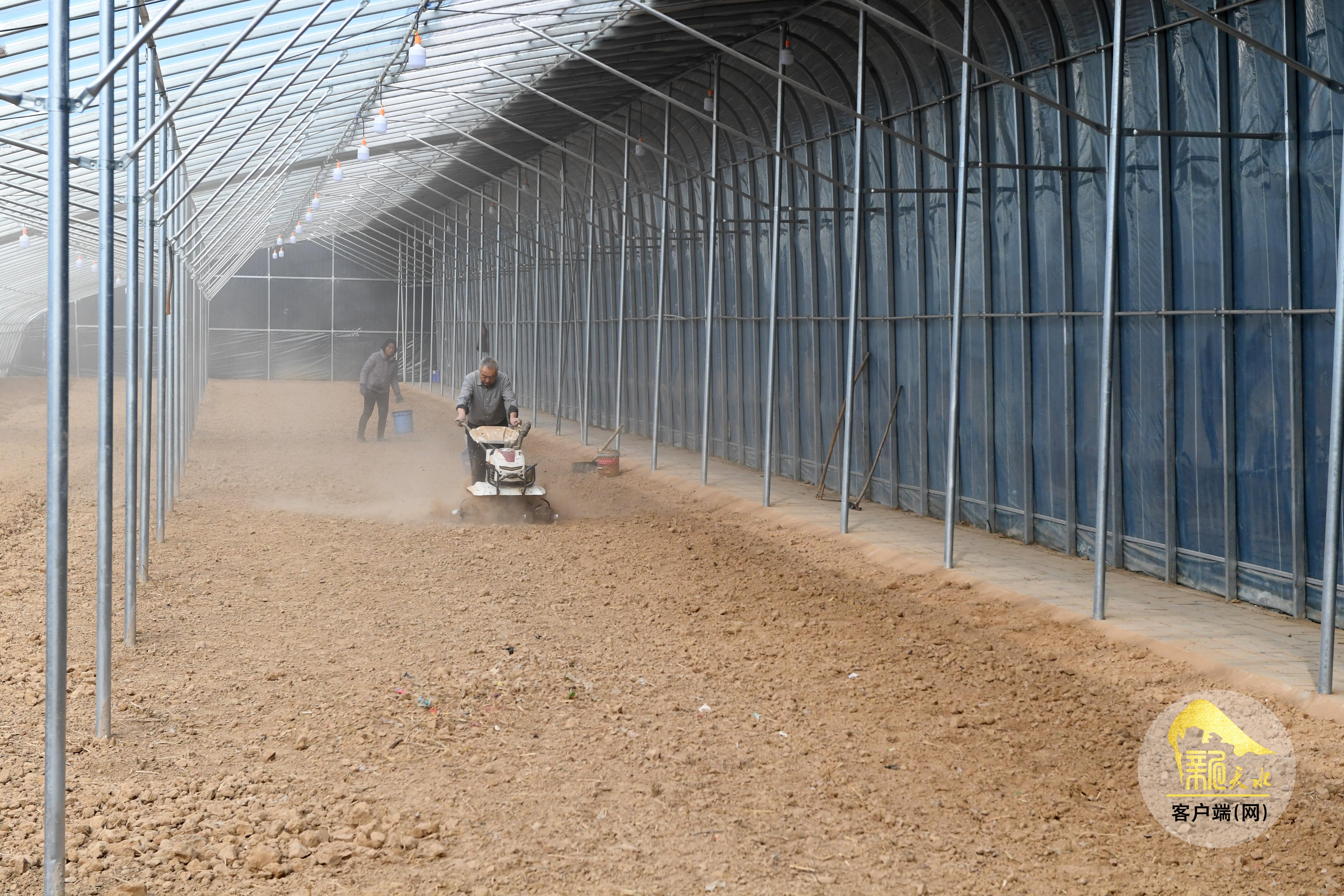 人勤春来早。2月25日,在秦安县莲花镇现代设施农业园区大棚内,种植户正利用耕机在整地,准备播种早春蔬菜。