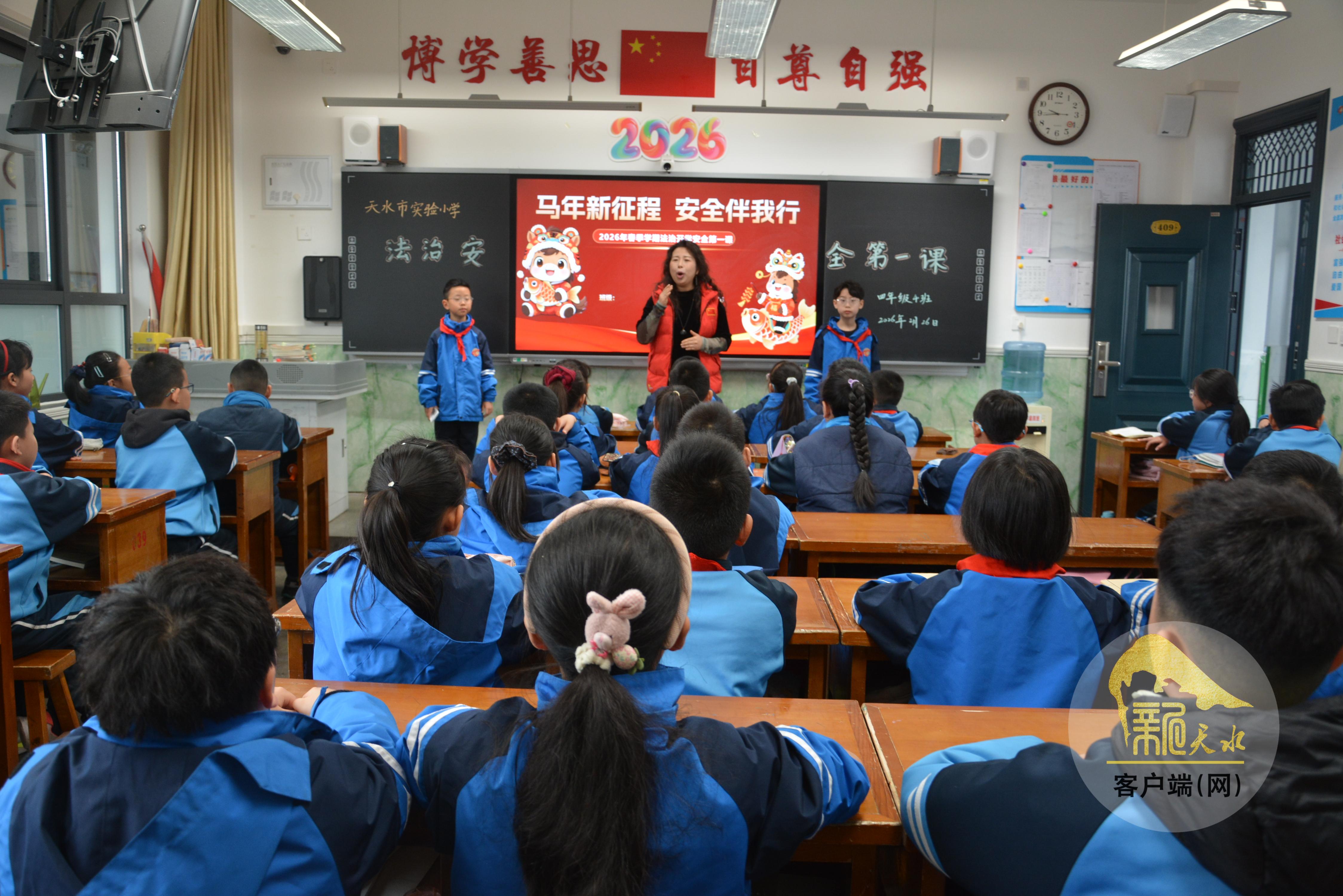 记者从天水市教育局了解到,为切实抓好2026年春季开学学生安全教育,市教育局制作了“开学安全第一课”安全教育课件,供全市各中小学校参考运用,内容包括交通安全、校园活动安全、消防安全等12项。各学校结合实际情况进一步丰富完善课件内容,利用安全主题班会,上好“开学安全第一课”,织密校园安全防护网,提升学生安全素养和避险能力,为学生们营造良好的学习环境。