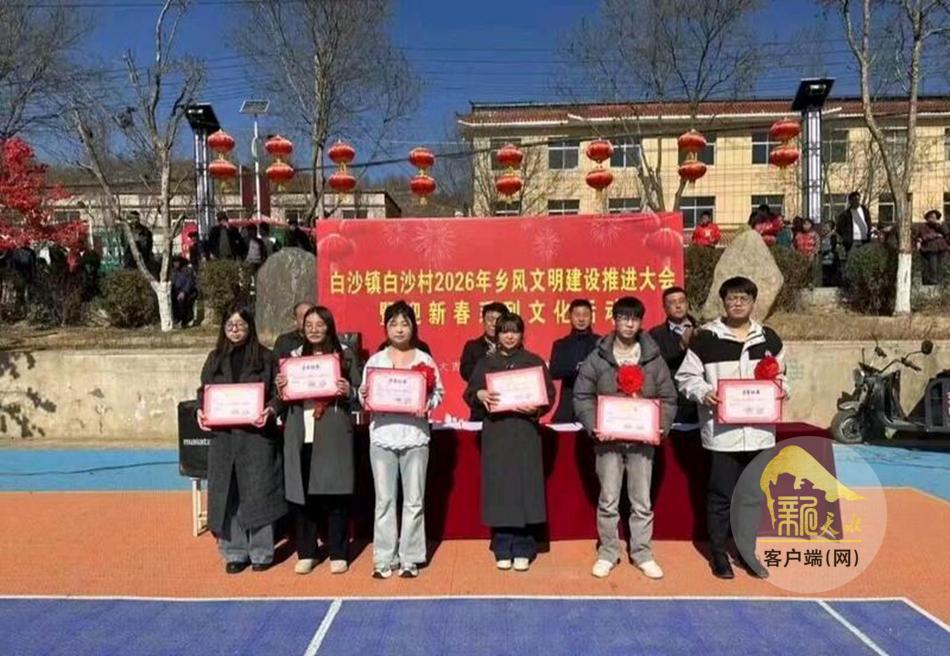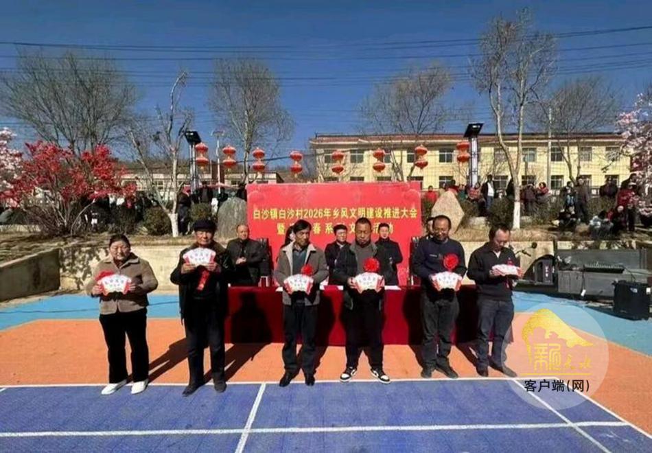 新天水讯 近日,清水县白沙镇白沙村文化广场锣鼓喧天、喜气洋洋,镇村干部、先进模范、80岁以上高龄老人代表及村民群众共计200余人欢聚一堂,共同举办白沙村2026年度乡风文明建设推进大会暨迎新春系列活动,见证荣誉时刻、共话发展蓝图。
