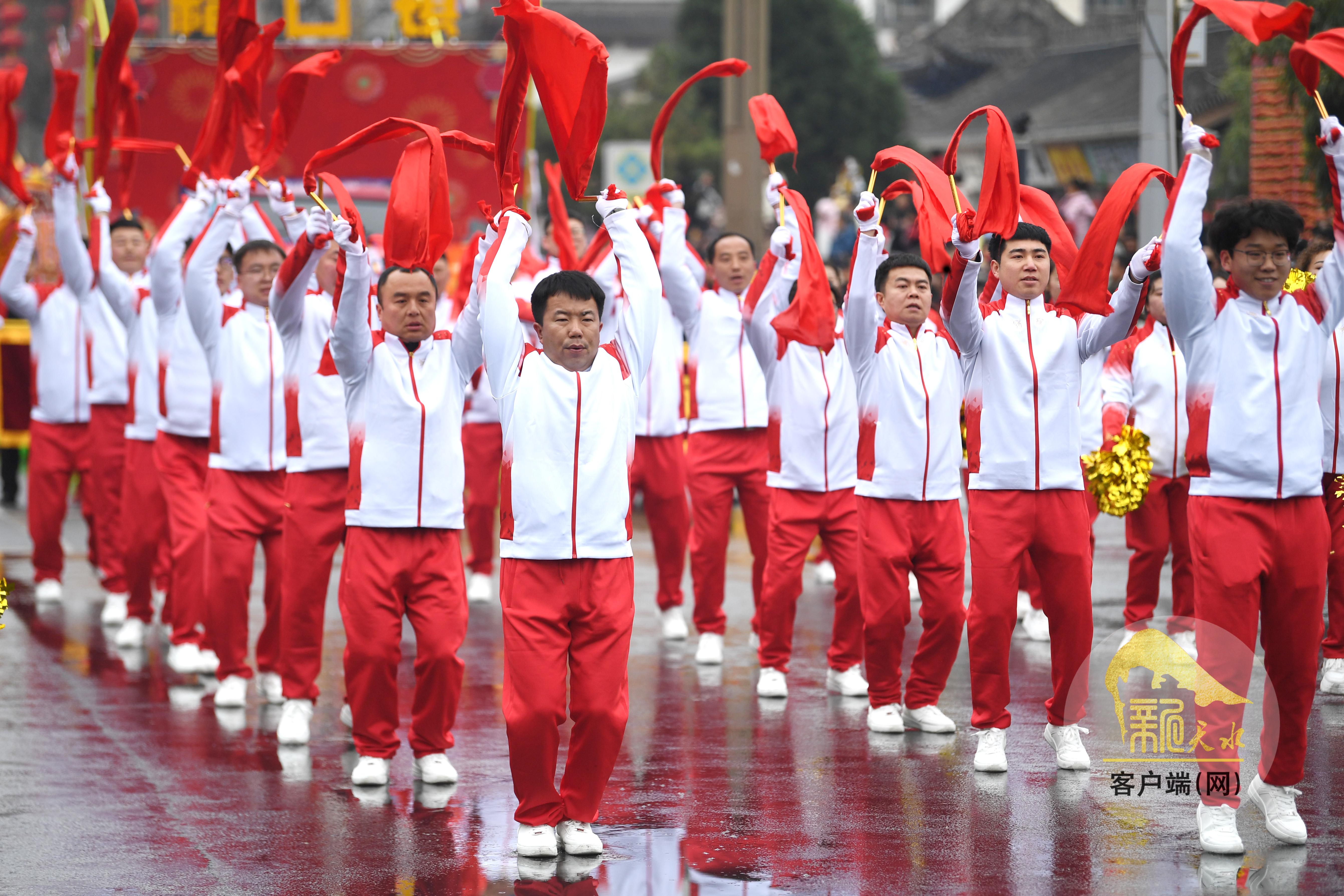 展演途中,锣鼓铿锵、秧歌翩跹、舞狮腾跃、旱船摇曳,各类民俗绝活轮番上演。演员们身着传统服饰,踏着喜庆节拍与市民互动,让沿街群众近距离感受“看得见、摸得着、带得走”的年味记忆。
