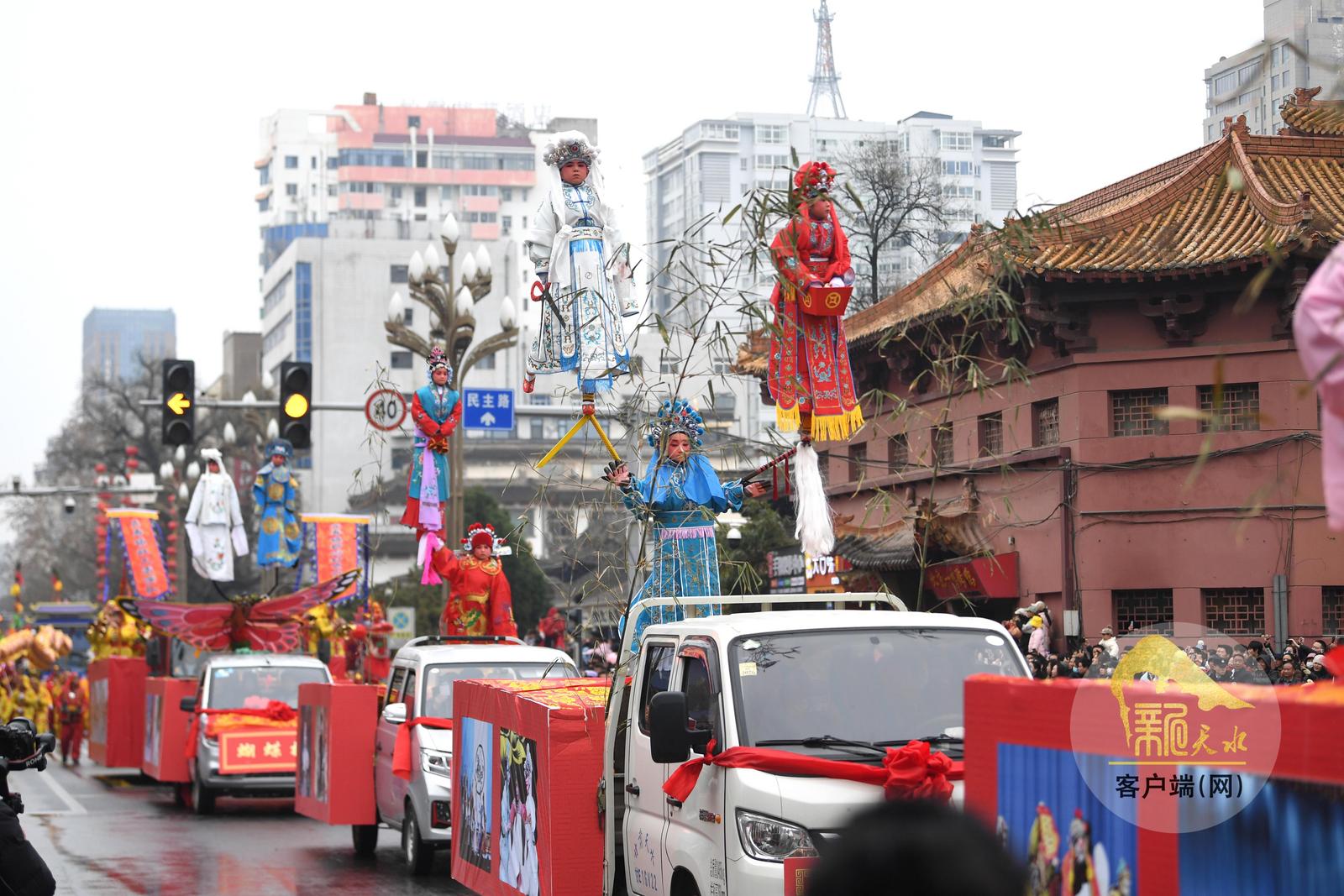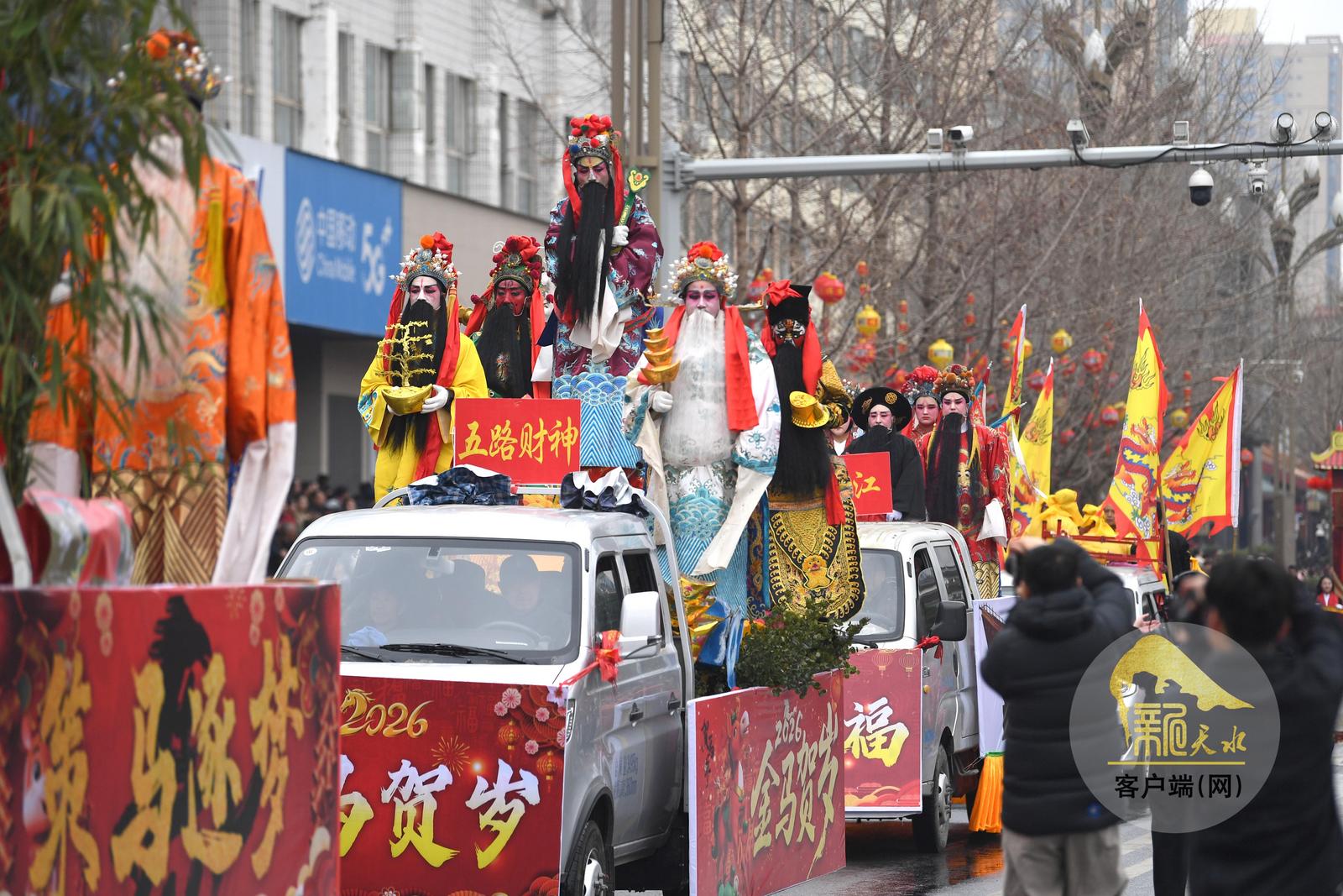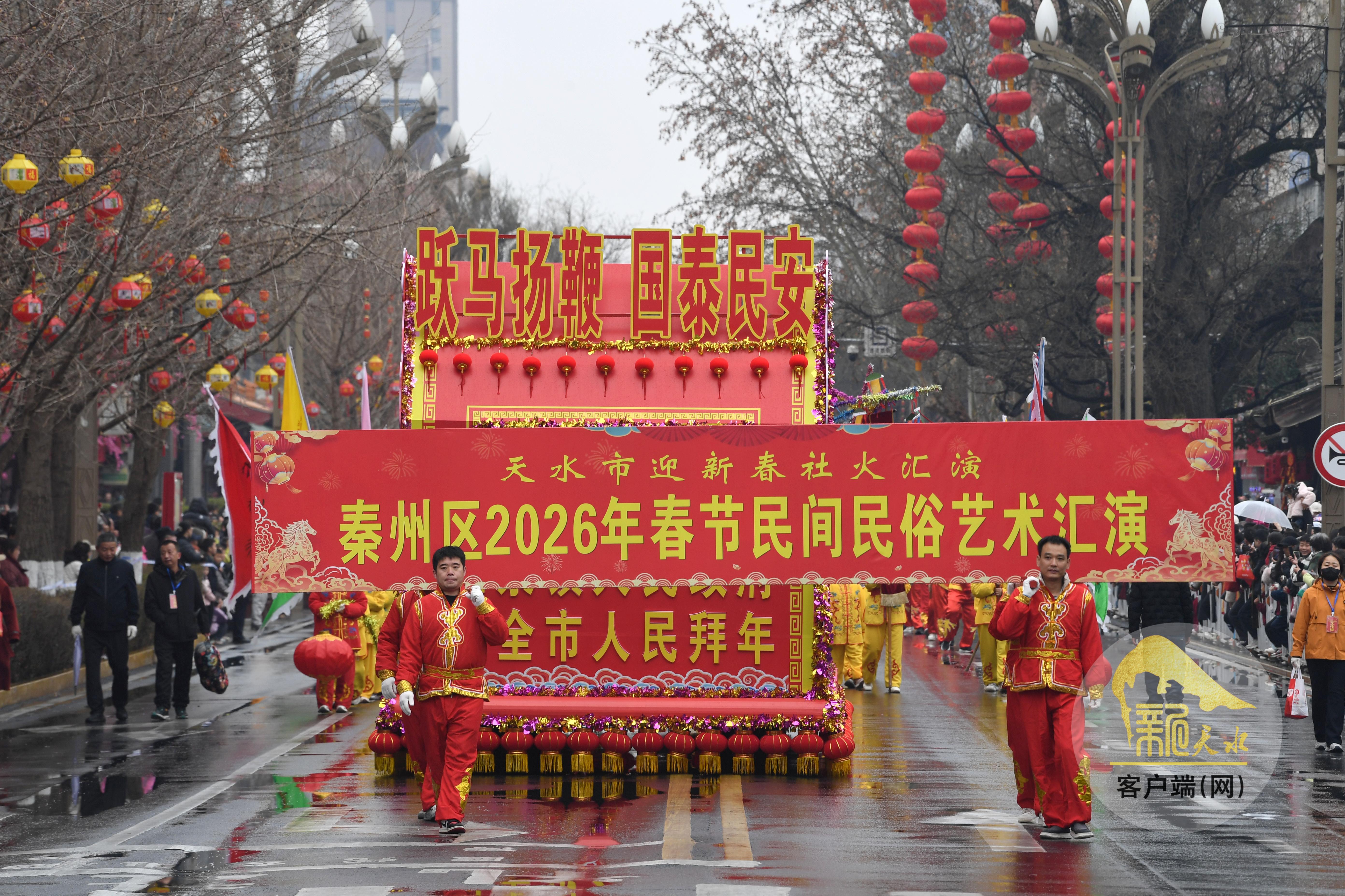 3月1日(农历正月十三)上午,以“骐骥驰骋贺新春·福满龙城秦州年”为主题的秦州区2026年春节民间民俗艺术汇演举行。来自全区16个乡镇、7个街道的23支社火队伍,从红桥北十字集结出发,沿建设路、民主路、大同路一路行进展演。沿途集中展示全区民俗文化、文旅融合等建设成果,所到之处宛如流动的风景线,让民俗风情浸润城市街巷。