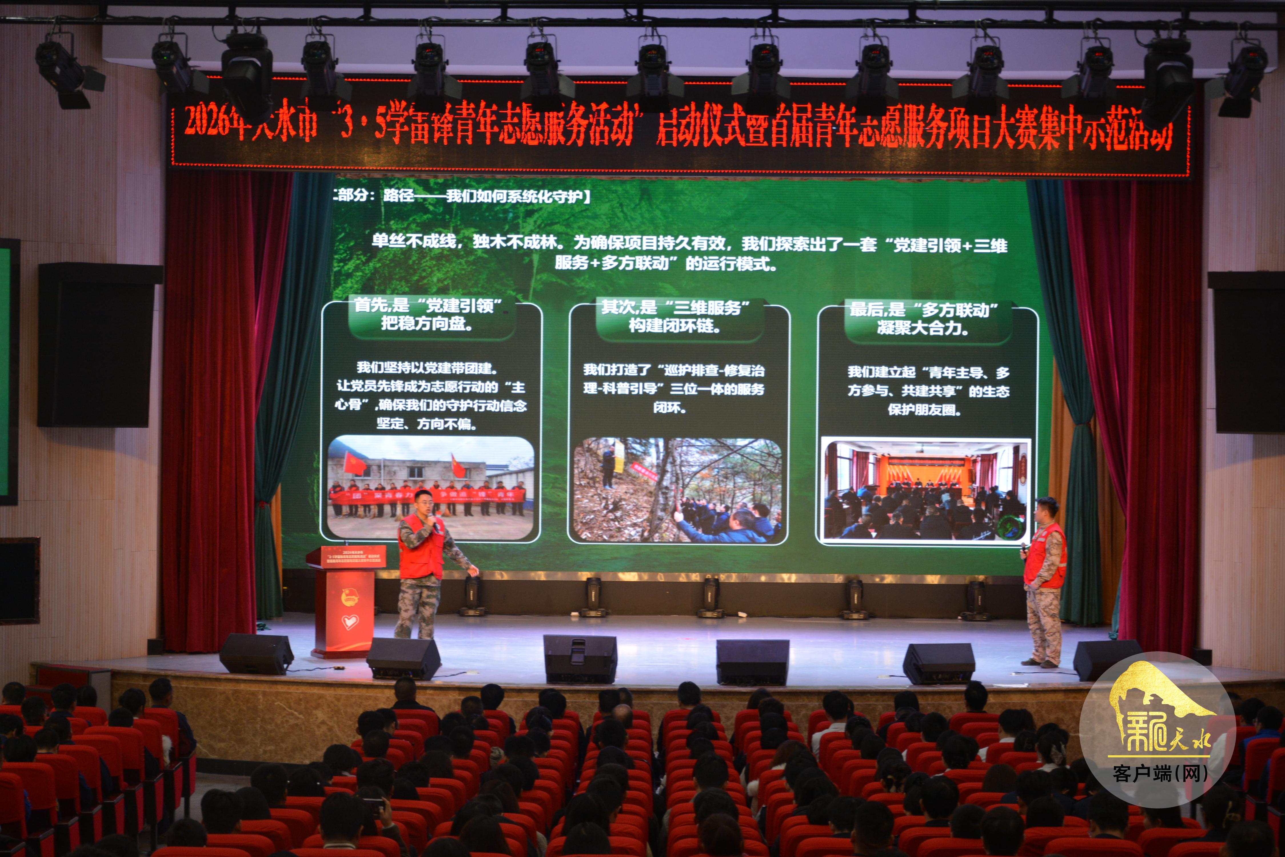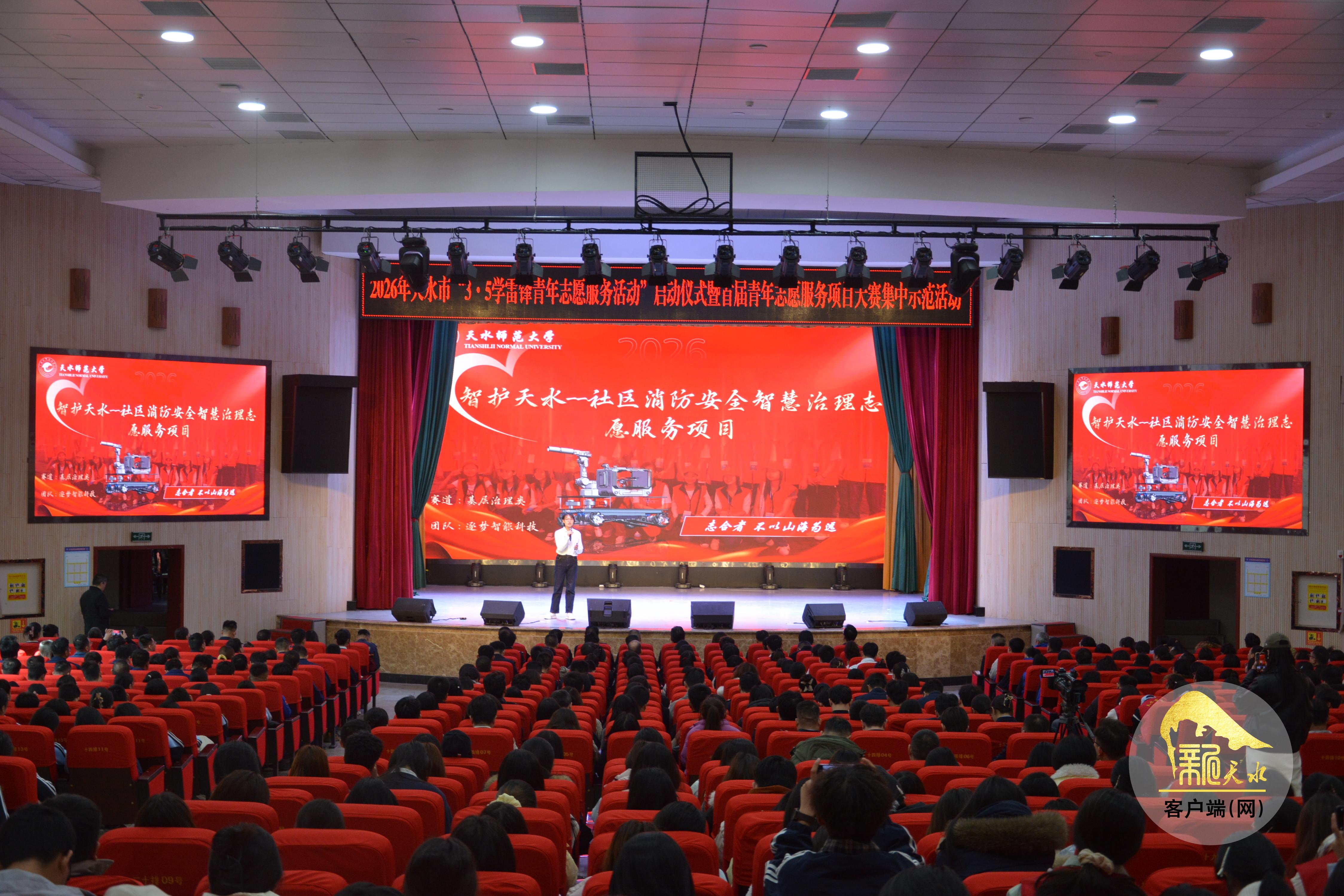 新天水讯【天水融媒记者 蔚军平】3月5日,2026年天水市“3·5学雷锋志愿服务活动”启动仪式暨首届青年志愿服务项目大赛集中示范活动在天水师范大学举行。