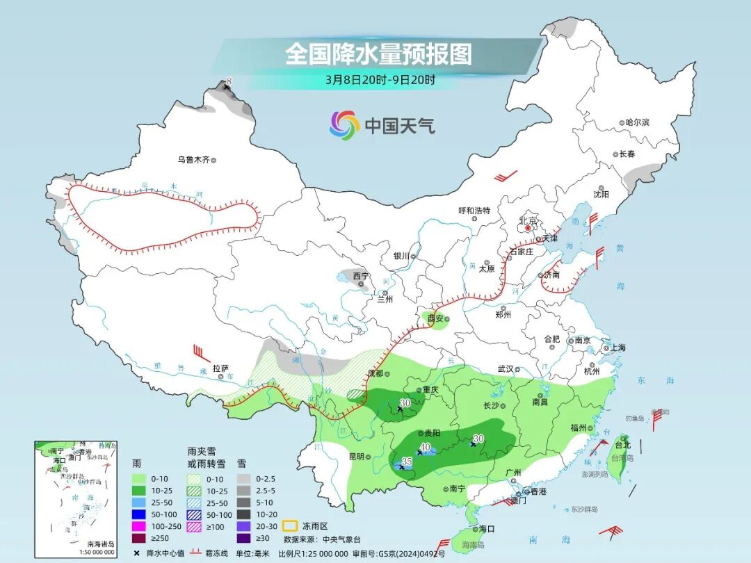 由于时效较远,雨雪落区还会有调整,大家留意临近最新预报。