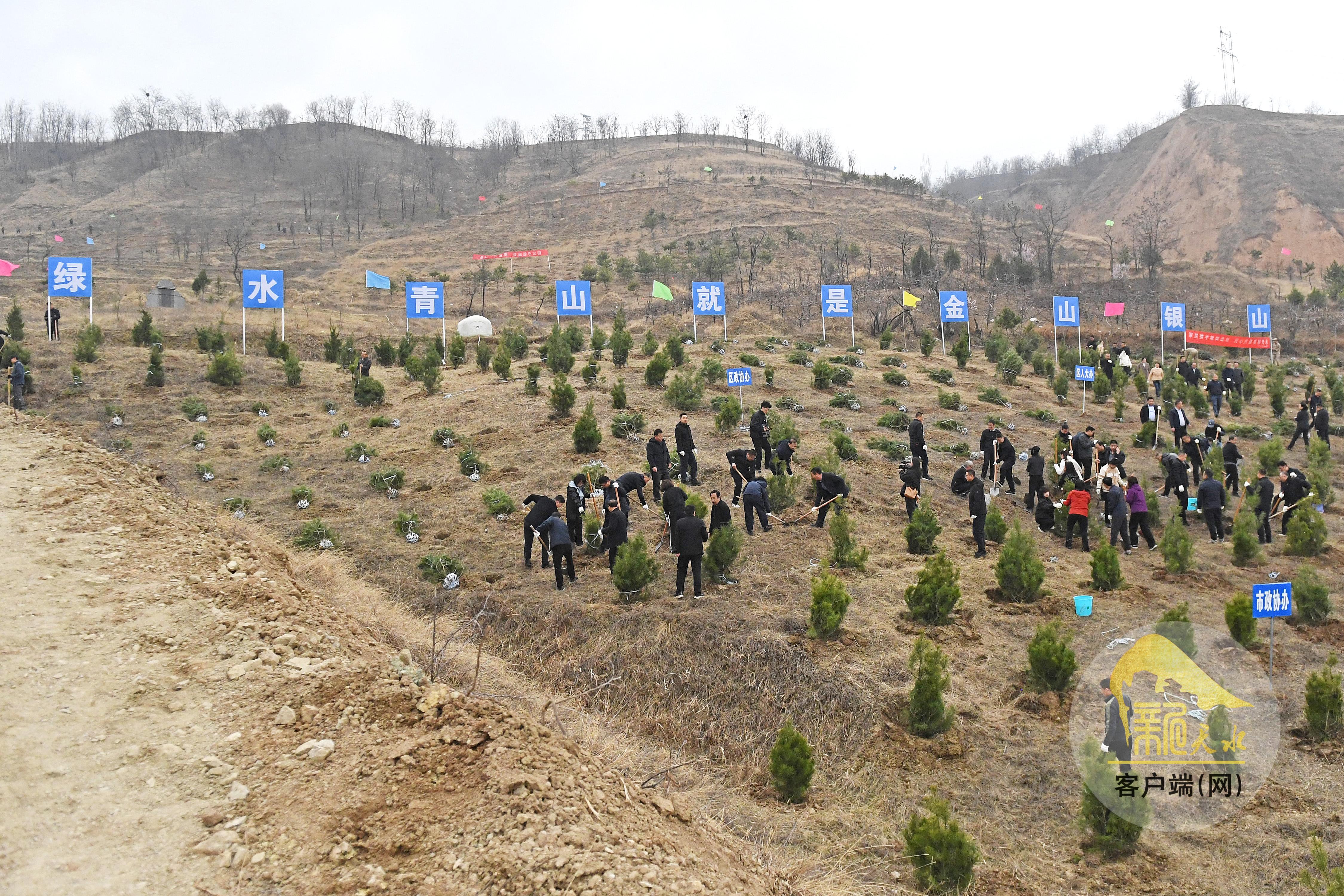 温润的春风拂过陇原大地,染绿了阡陌田埂,干部职工、部队官兵、青年志愿者和广大群众共赴春光之约,用双手播种绿色希望,用实干勾勒生态画卷,为美丽天水添新绿,为生态建设增活力。