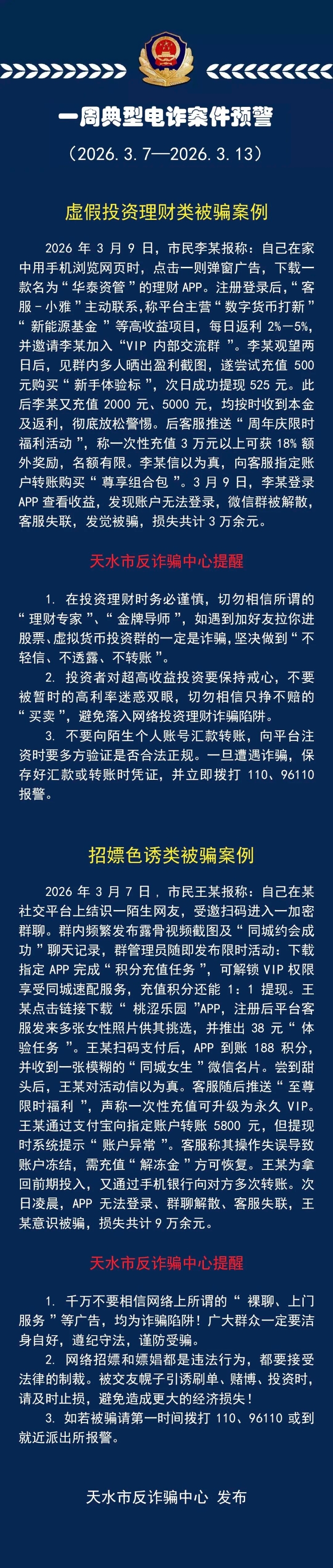一周典型电诈案件预警(2026.3.7-2026.3.13)
