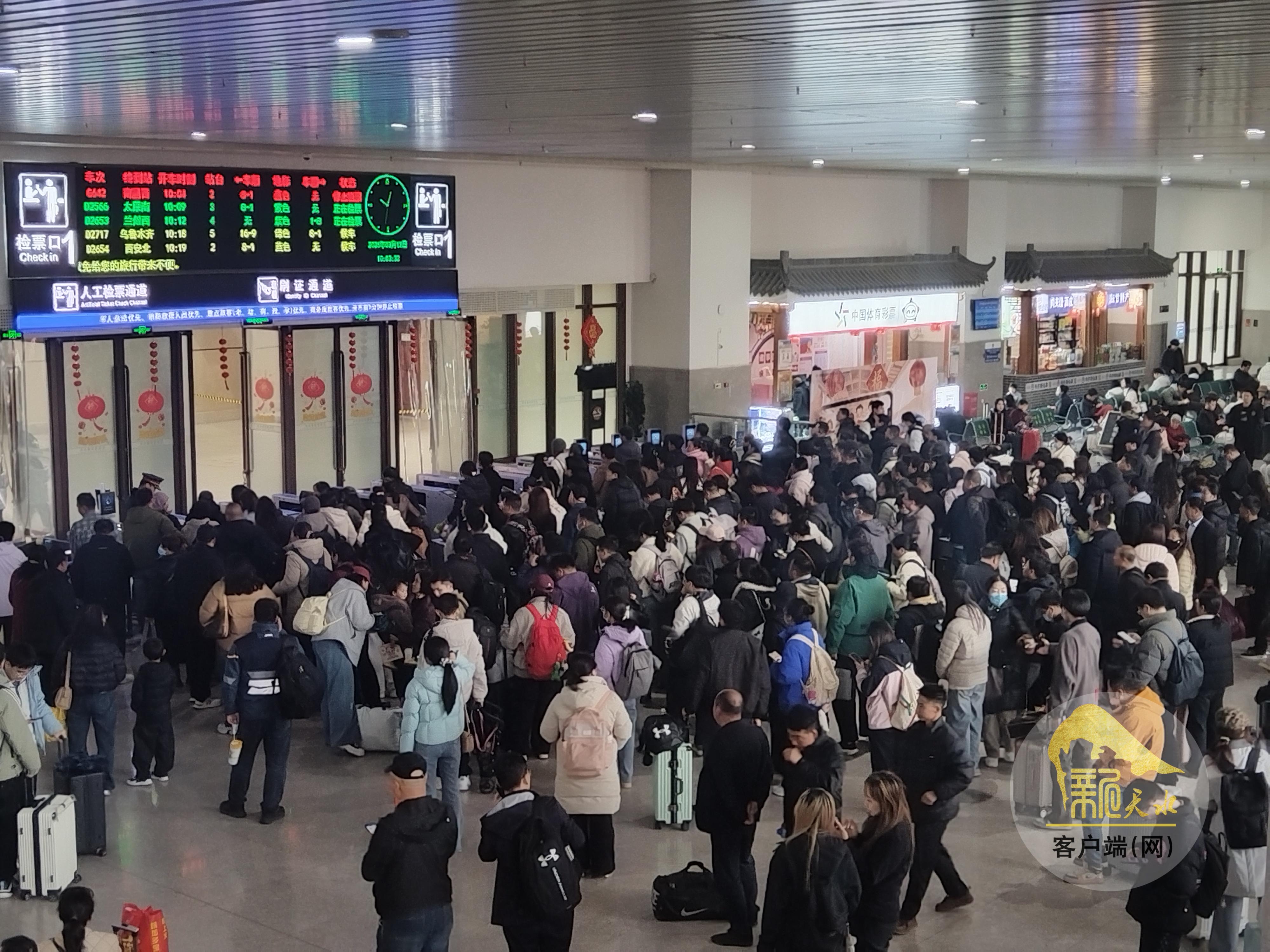 春运期间,天水南站长途客流以北京、上海、广州为主,短途以西安、兰州方向为主。面对返乡流、探亲流、学生流、务工流叠加的出行高峰,天水南站增开通道、加密引导、强化值守,同时落实学生票优惠、老年旅客专属服务、急客绿色通道等便民举措,确保旅客出发得了、出发得好、出发得安心。