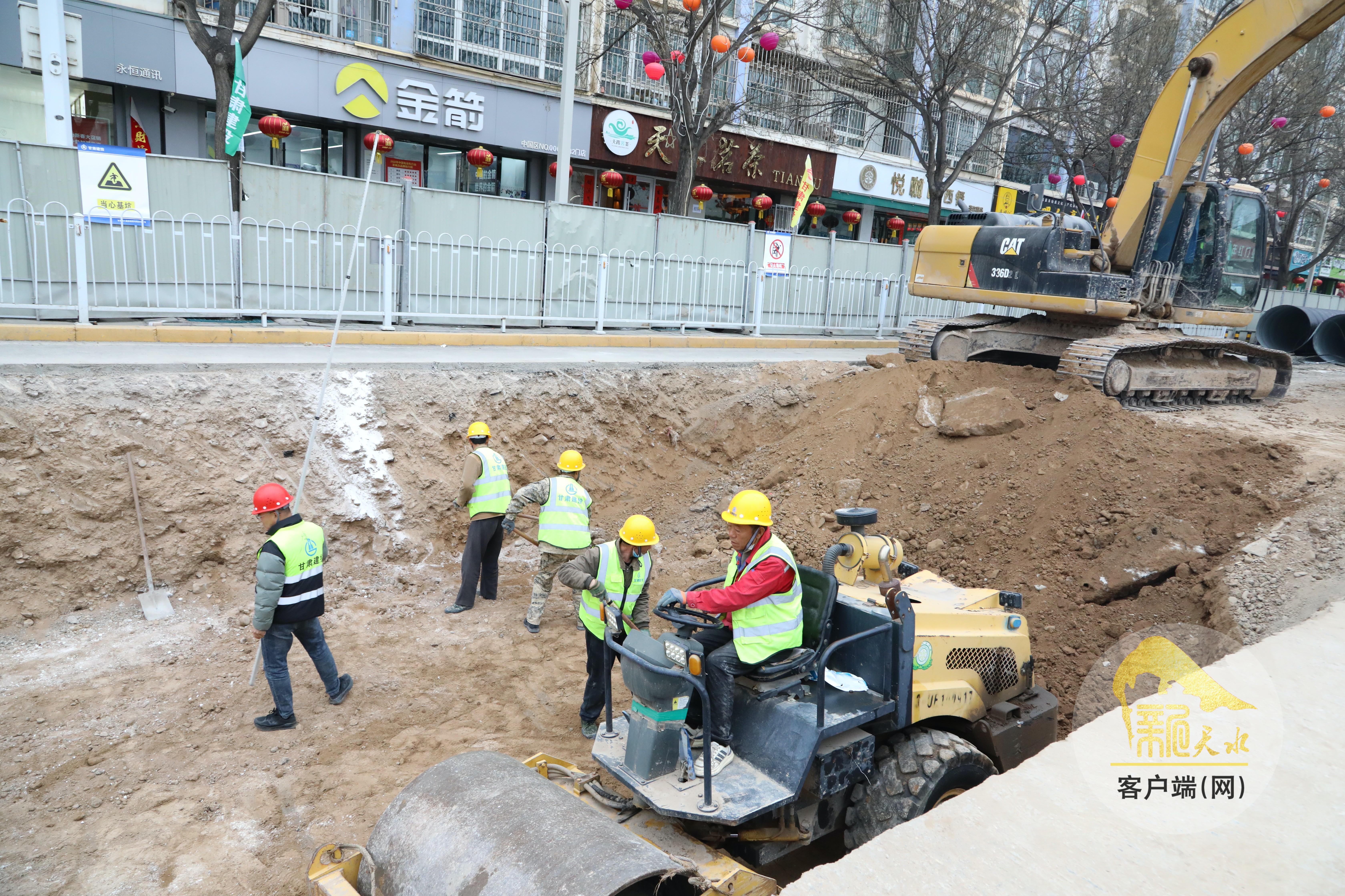近日,在秦安县城区供排水管网提升改造工程建设现场,工人们正在加速施工。该项目是秦安县完善基础设施、提升城市承载力的重点民生工程,建成后将显著提升城市排水系统效率,有效缓解城市内涝问题,进一步改善居民生活环境,提升群众幸福指数。(天水融媒记者 马放 摄)