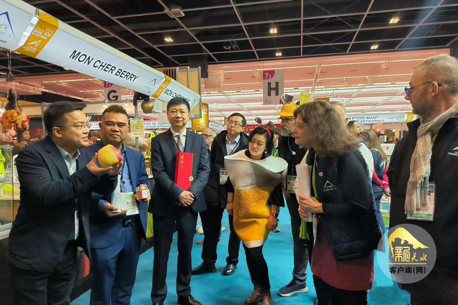 现场,来自中国的新农人手持苹果,向到场的法国农业从业者、采购商及普通观众详细推介这款来自黄土高原的佳果:“我们的苹果生长在海拔1300至1800米的黄土高原,这里的黄绵土富含钙质,7项关键生长指标中有6项达到最优标准。全程按照有机标准种植,不使用化学杀虫剂,每一颗都是自然的馈赠。”外国友人纷纷手捧苹果端详、拍照留念,参展商专注聆听产品介绍,不少国际消费者当场品尝后竖起大拇指,对甘谷苹果的口感给予认可。